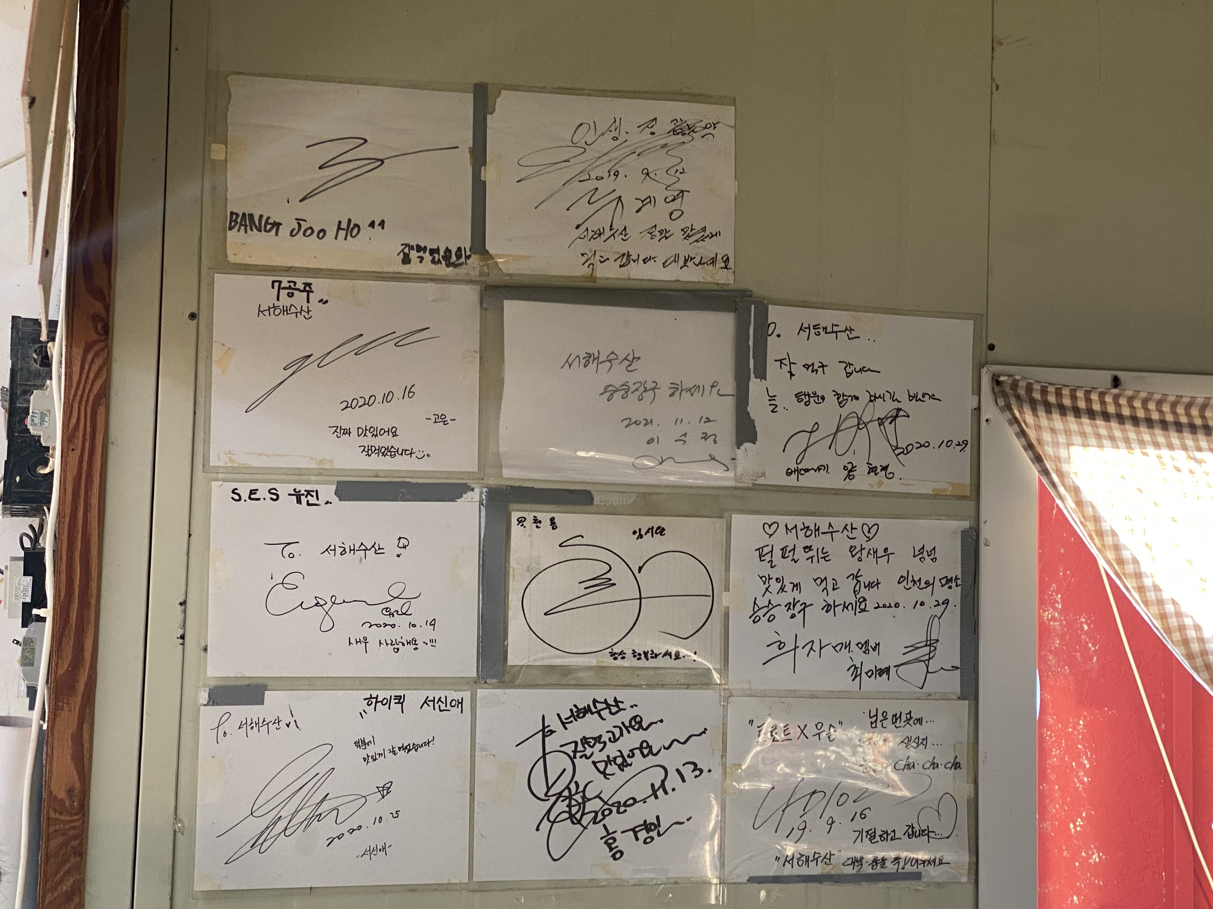 많은 연예인들이 다녀간 사인 흔적들이 있습니다. 눈에 띄는 게 유진, 임시완, 홍경민 등이 왔다 갔었네요.