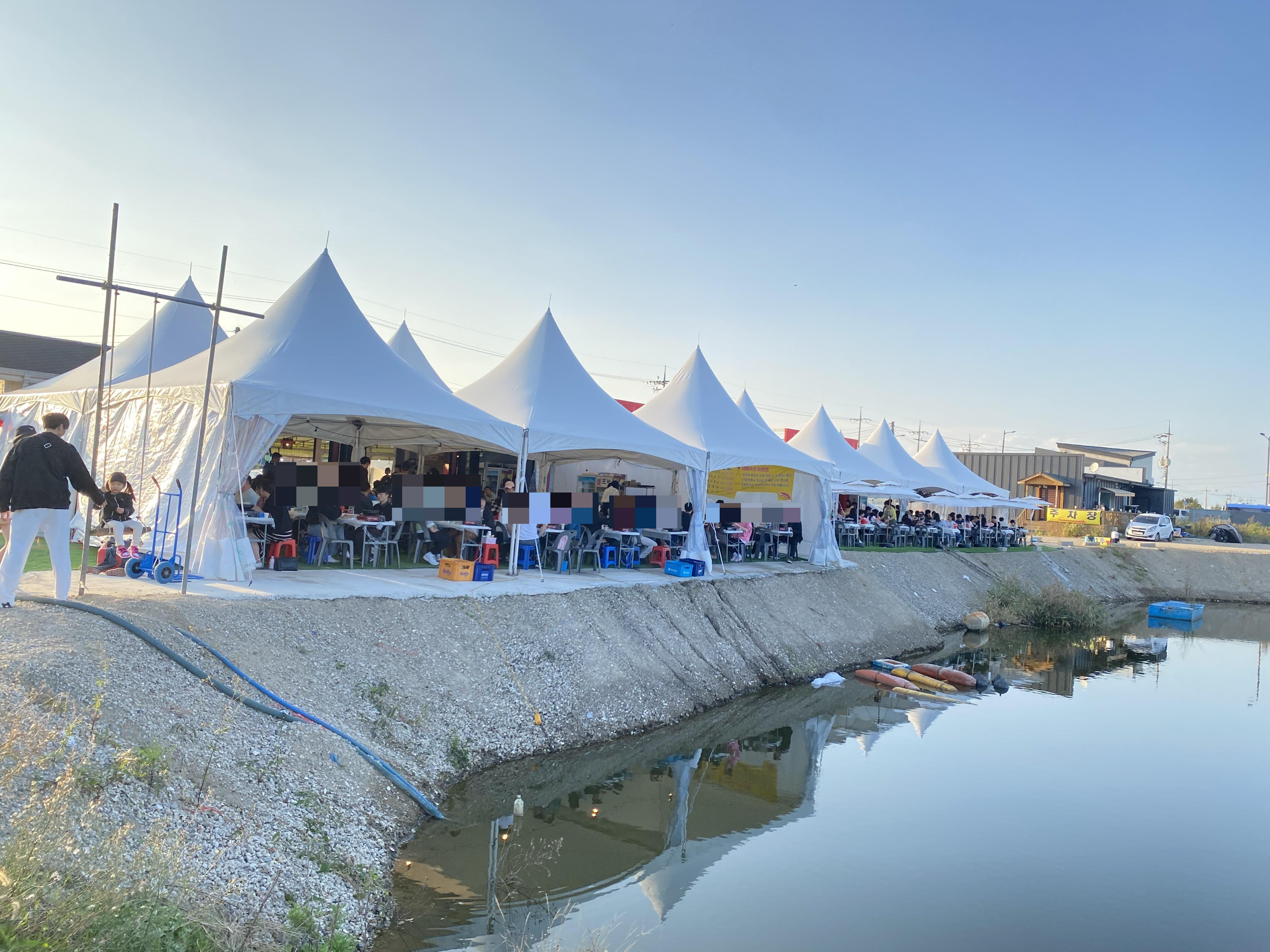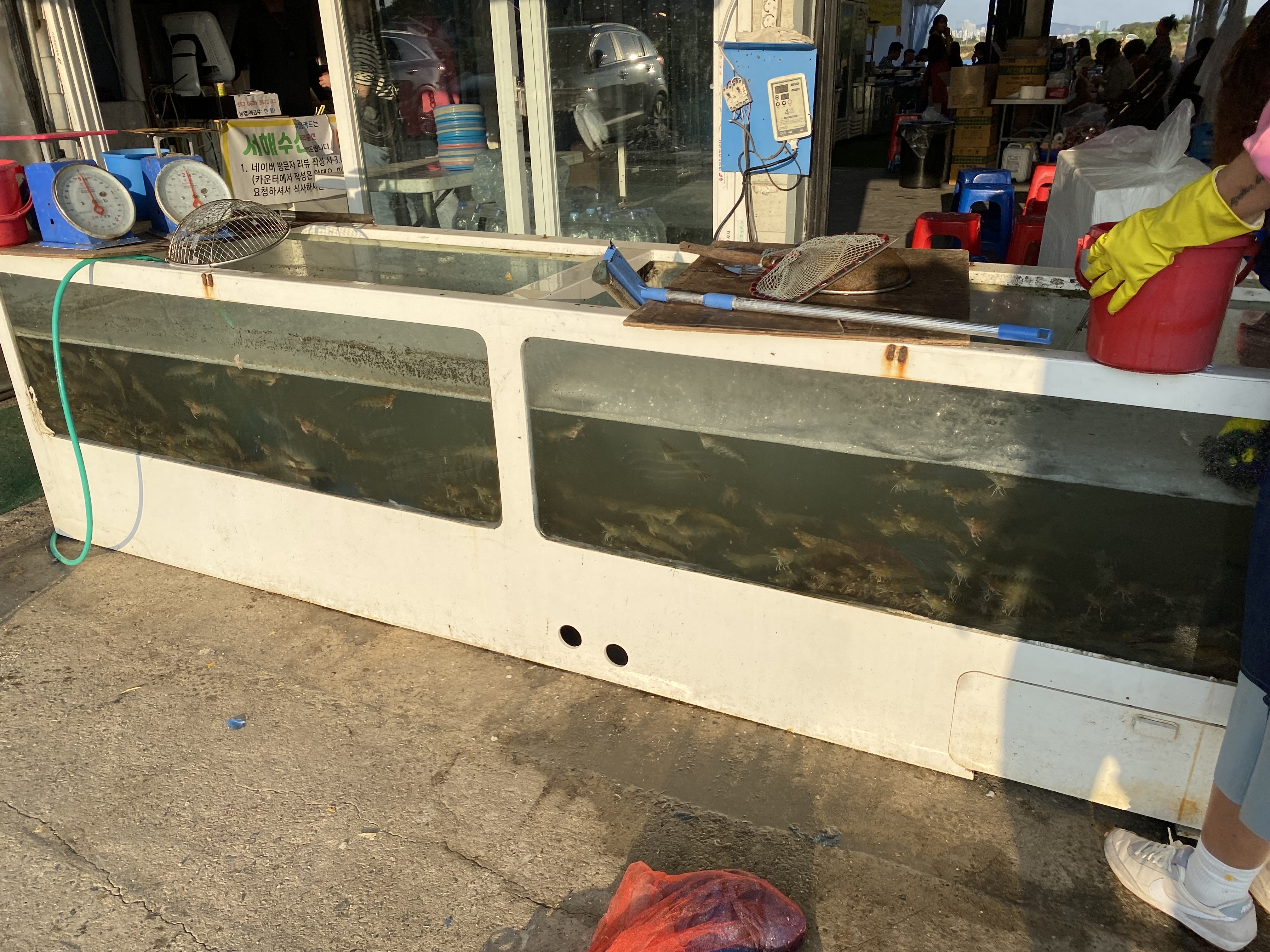 호수에서 바라본 서해수산은 하얀 척만에 파란색 테이블이 꽉 찬 있는 모습입니다. 아마 엄청나게 많은 새우들이 길러지고 요리로 나오는 거 같습니다. 정말 가을이나 날씨 좋을 때 오면 좋은 곳입니다.