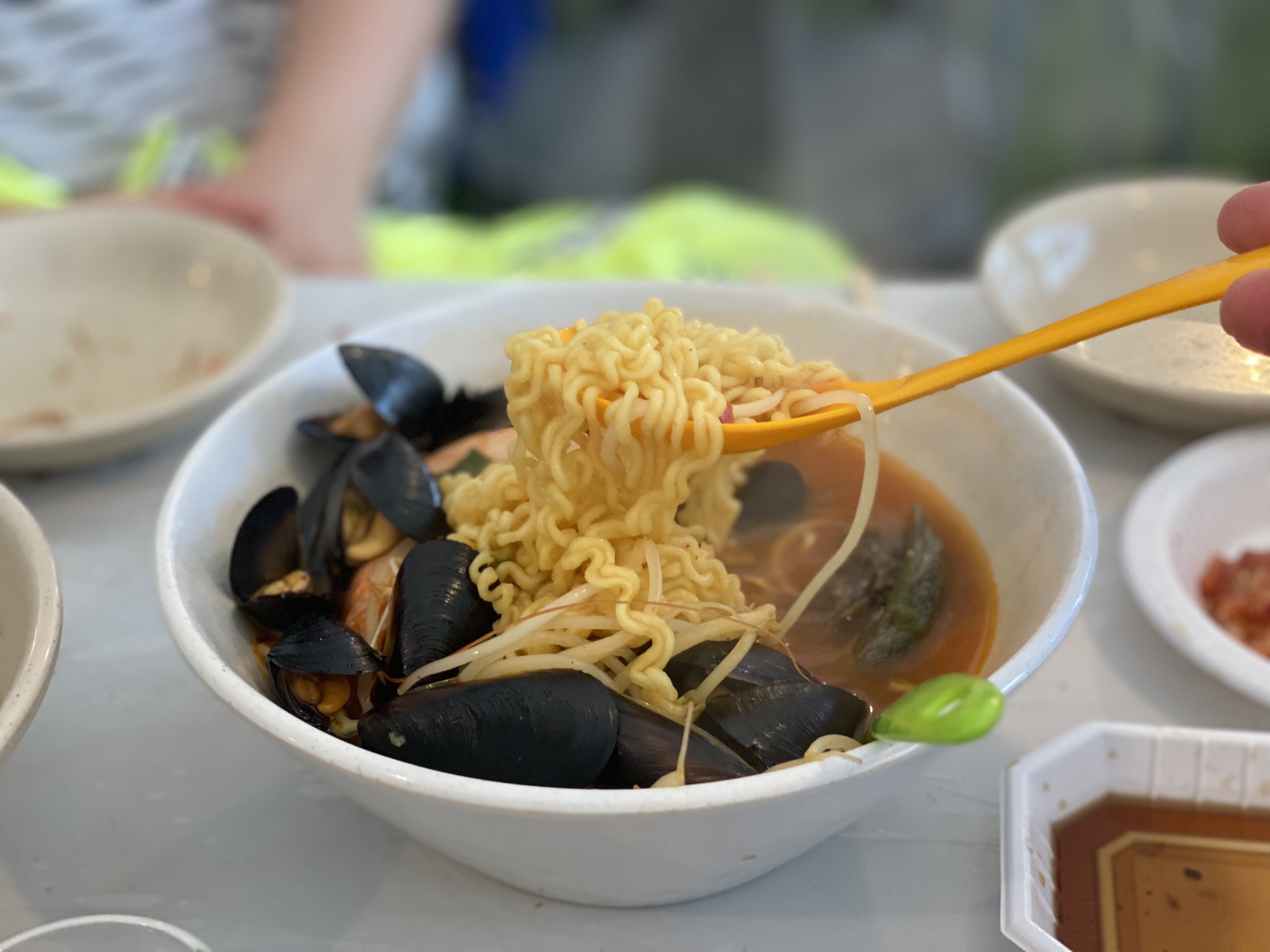 새우만 먹으면 질릴 수가 있어서 라면까지 함께 먹어야 합니다. 라면까지 한 그릇 하니깐 배가 부르더라고요.