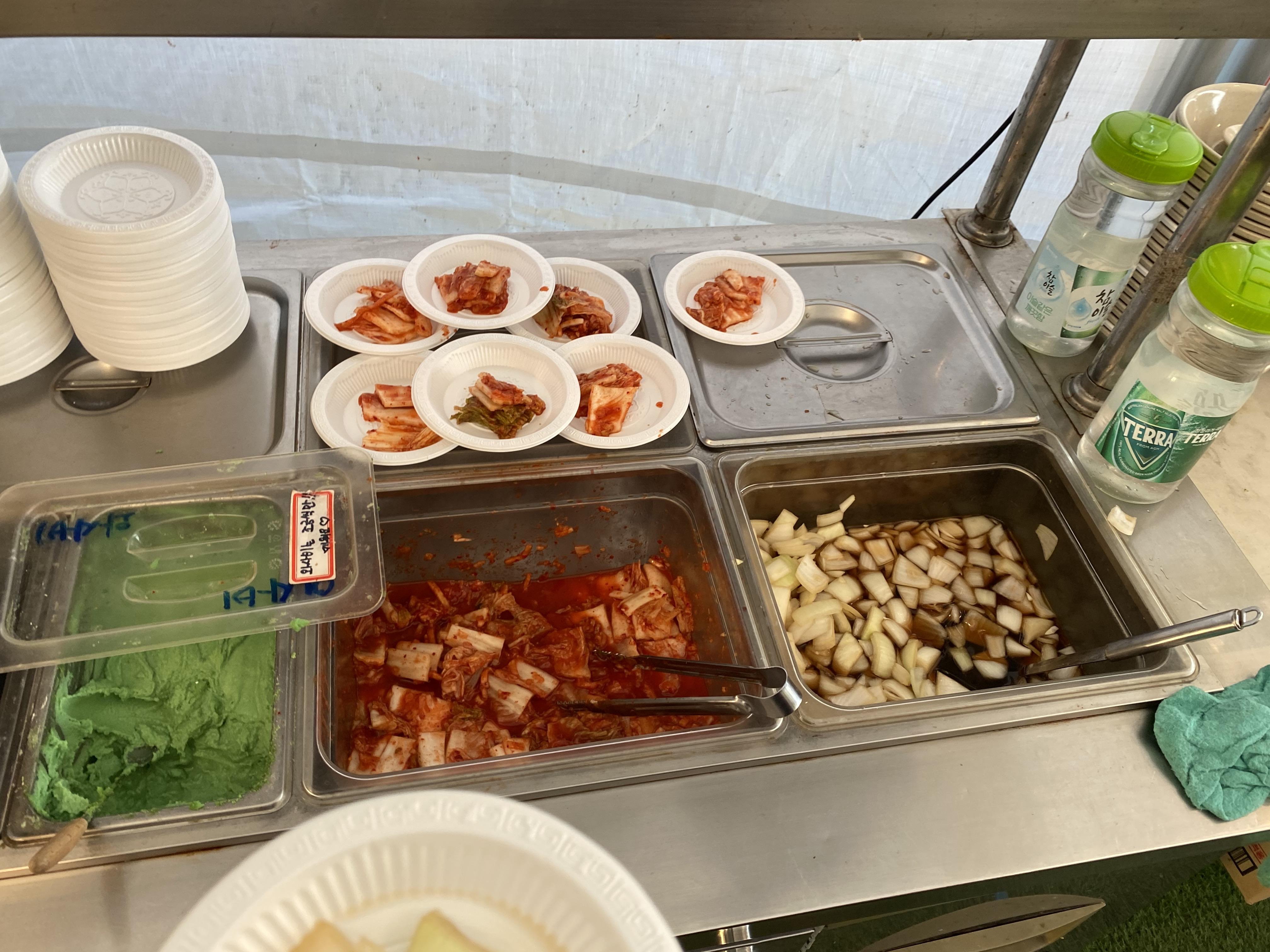 기본반찬은 양파절임과 김치 등이 있습니다. 부족하면 셀프바를 이용해서 드시면 됩니다.