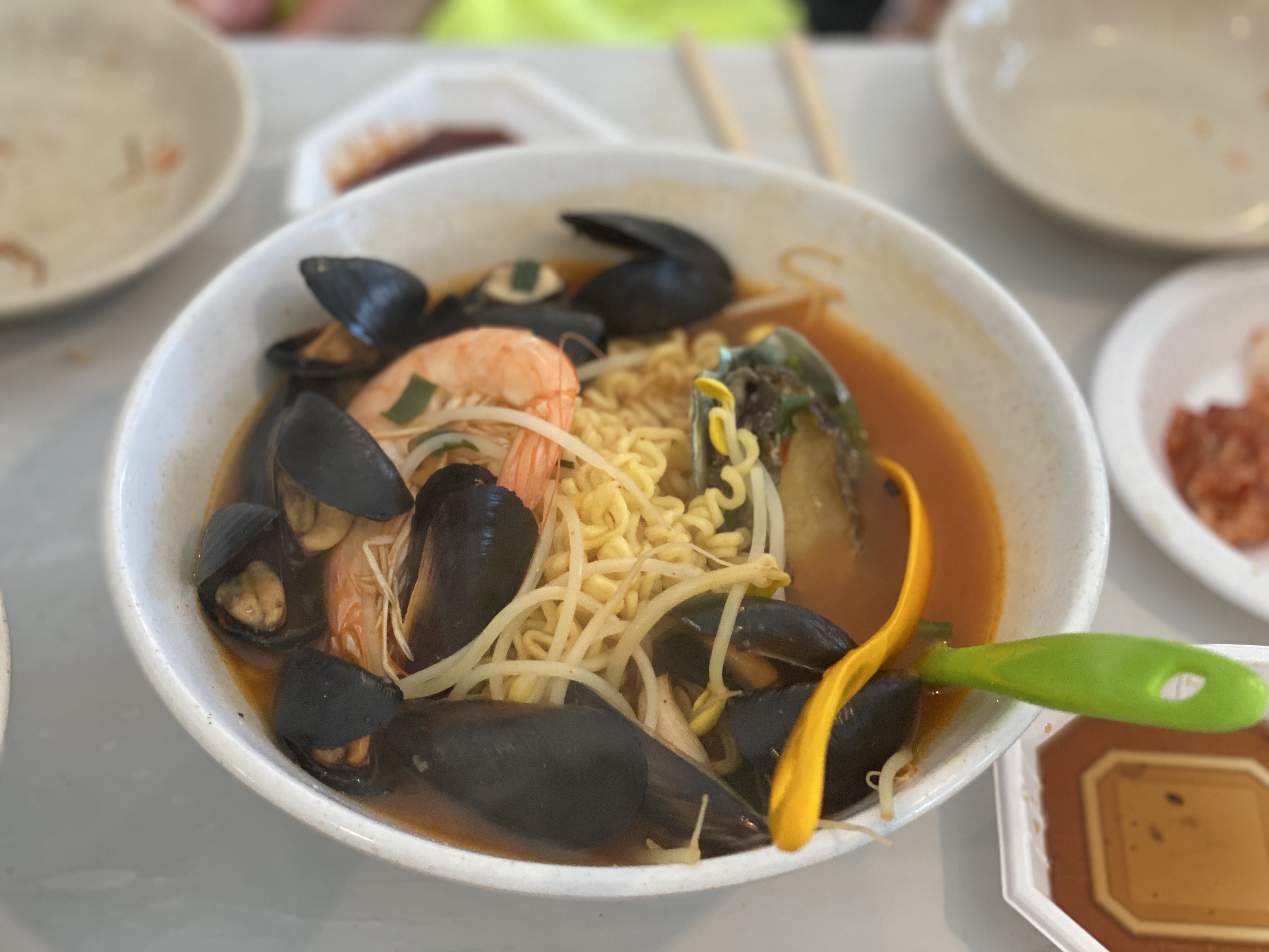 해물라면이 8,000원인데 이 정도 퀄리티면 정말 괜찮습니다. 전복에 새우에 홍합까지 나오니 가성비가 좋습니다.