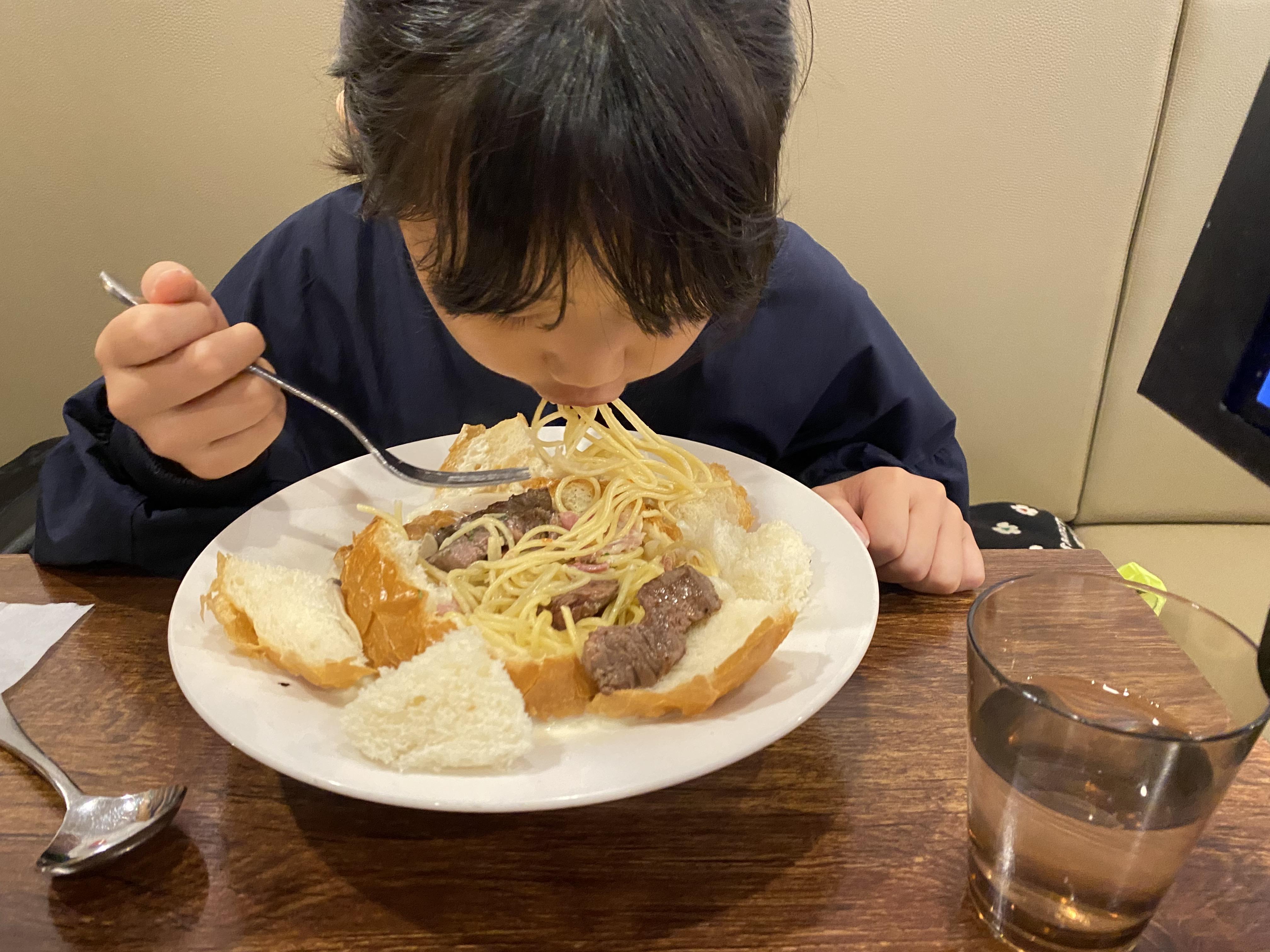 빠네크림스테이크파스타는 아이들이 먹기에도 정말 안성맞춤인 음식입니다. 고기도 미디엄으로 해서 딱 알맞게 구워서 나옵니다. 고기와 함께 빵을 잘 먹더라고요. 그리고 면도 정말 맛있게 먹어서 제가 다 뿌듯했습니다.