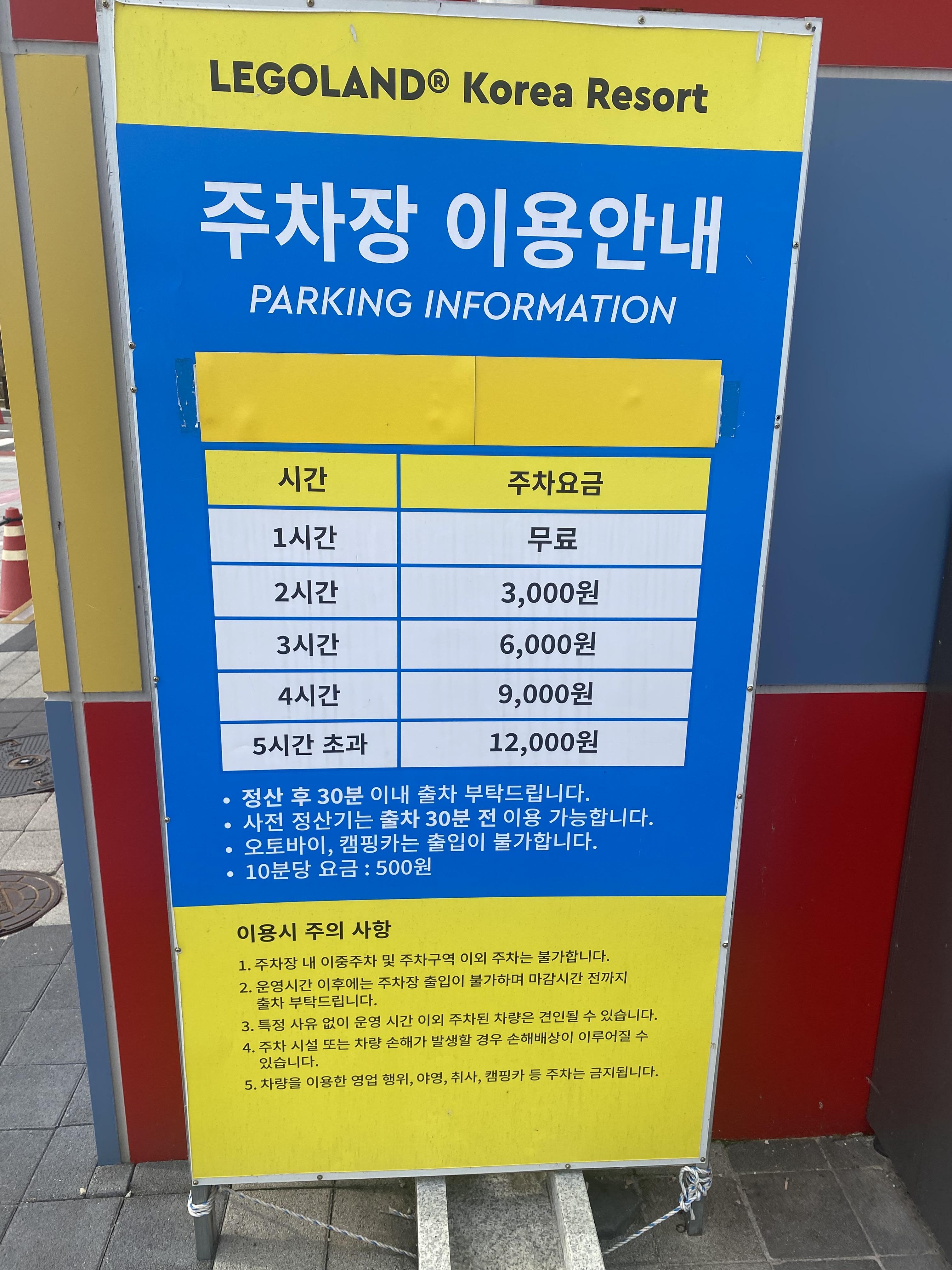 주차요금은 1시간 무료, 2시간부터 3,000원의 이용요금 안내가 있습니다. 하루종일 이용하면 12,000원에 이용요금이 발생됩니다. 입장료도 비싼데 주차요금까지 받고 있어서 논란이 많았던 걸로 기억합니다.