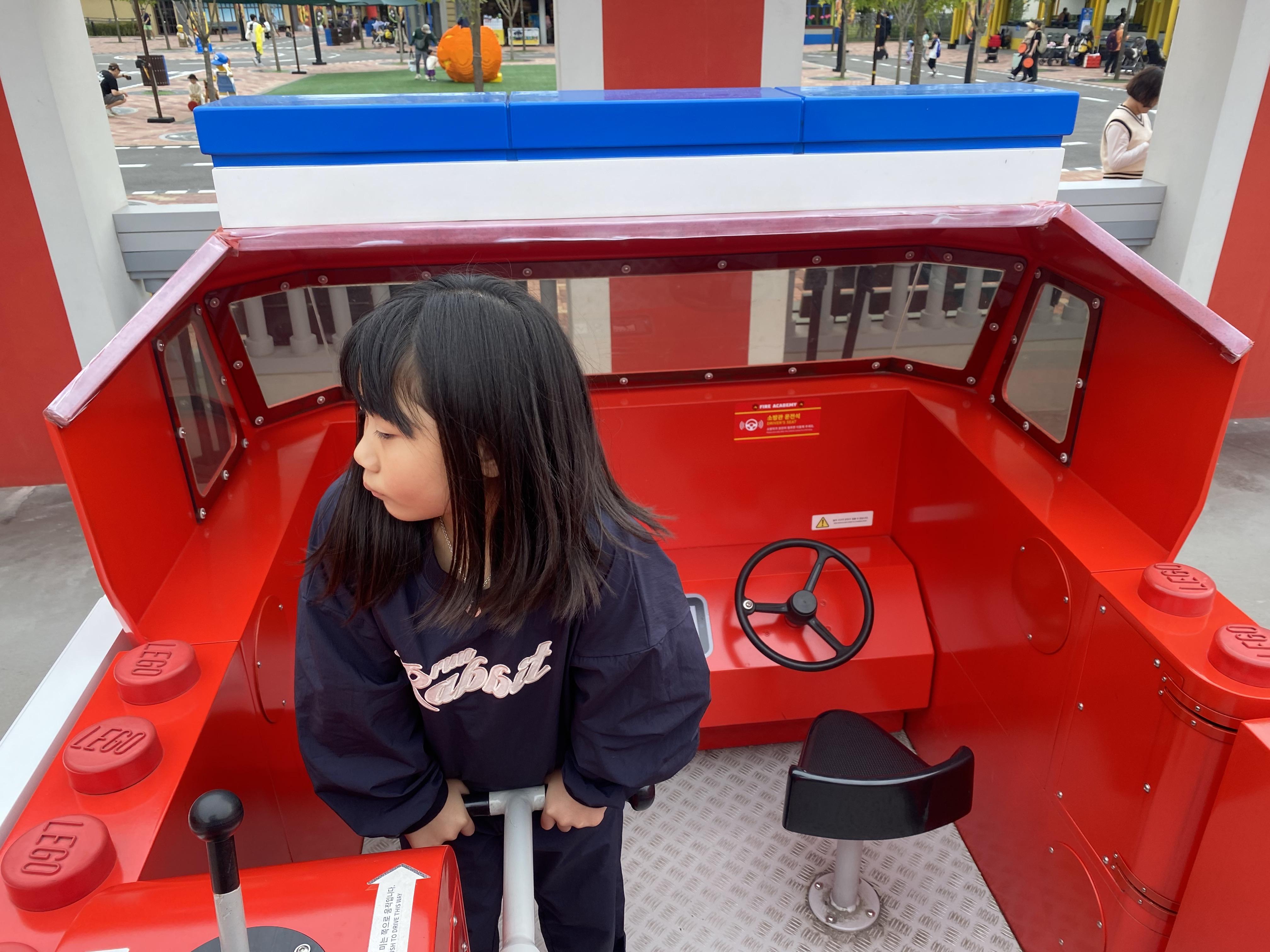 파이어 아카데미는 부모와 아이가 함께 즐길 수 있는 곳이어서 좋았습니다. 아이와 함께 소방차를 타고 불을 끄는 미션을 해결하는 놀이기구입니다.
