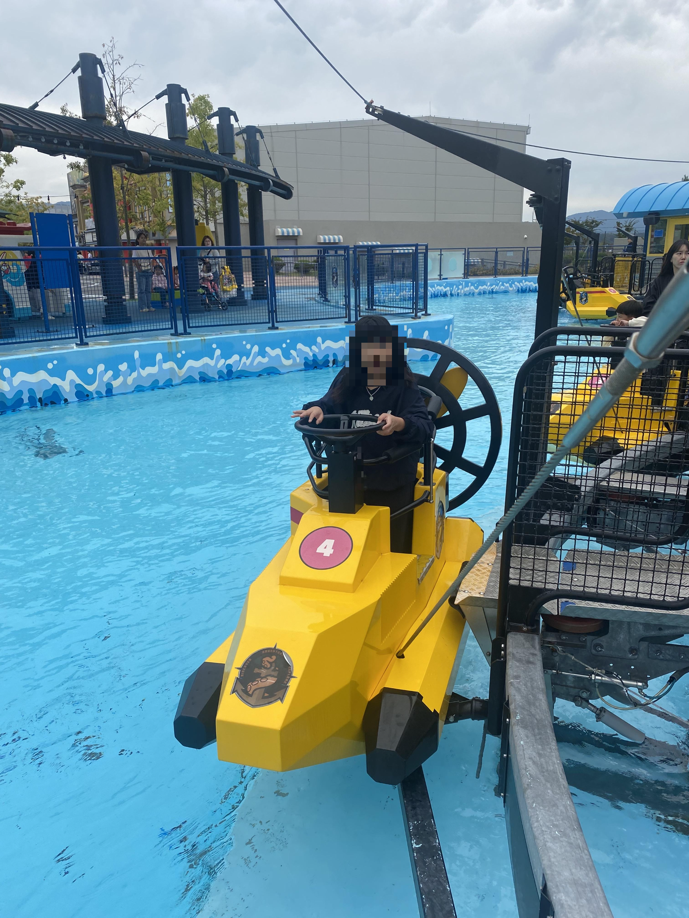 웨이브 레이스는 물 위에서 빠르게 회전하는 놀이기구로 중간중간 물이 튈 수 있어서 우비를 착용하고 타시는 분들도 있습니다. 저희는 그냥 즐겼는데 너무 재미있어하더라고요.