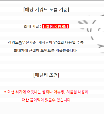 그럼 위 사진과 같이 상위노출순위에 따라서 최대지급 PER포인트가 표시가 되는데
