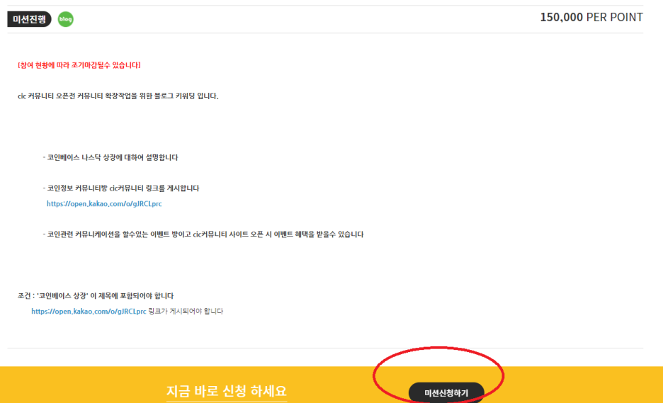 가이드에 맞게 블로그에 홍보를 하면 미션신청하기를 클릭하면 됩니다.