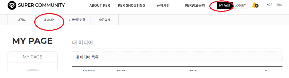마이페이지 -> 내미디어에 들어가면 지원할수 있는 미디어 플랫폼이 있습니다.