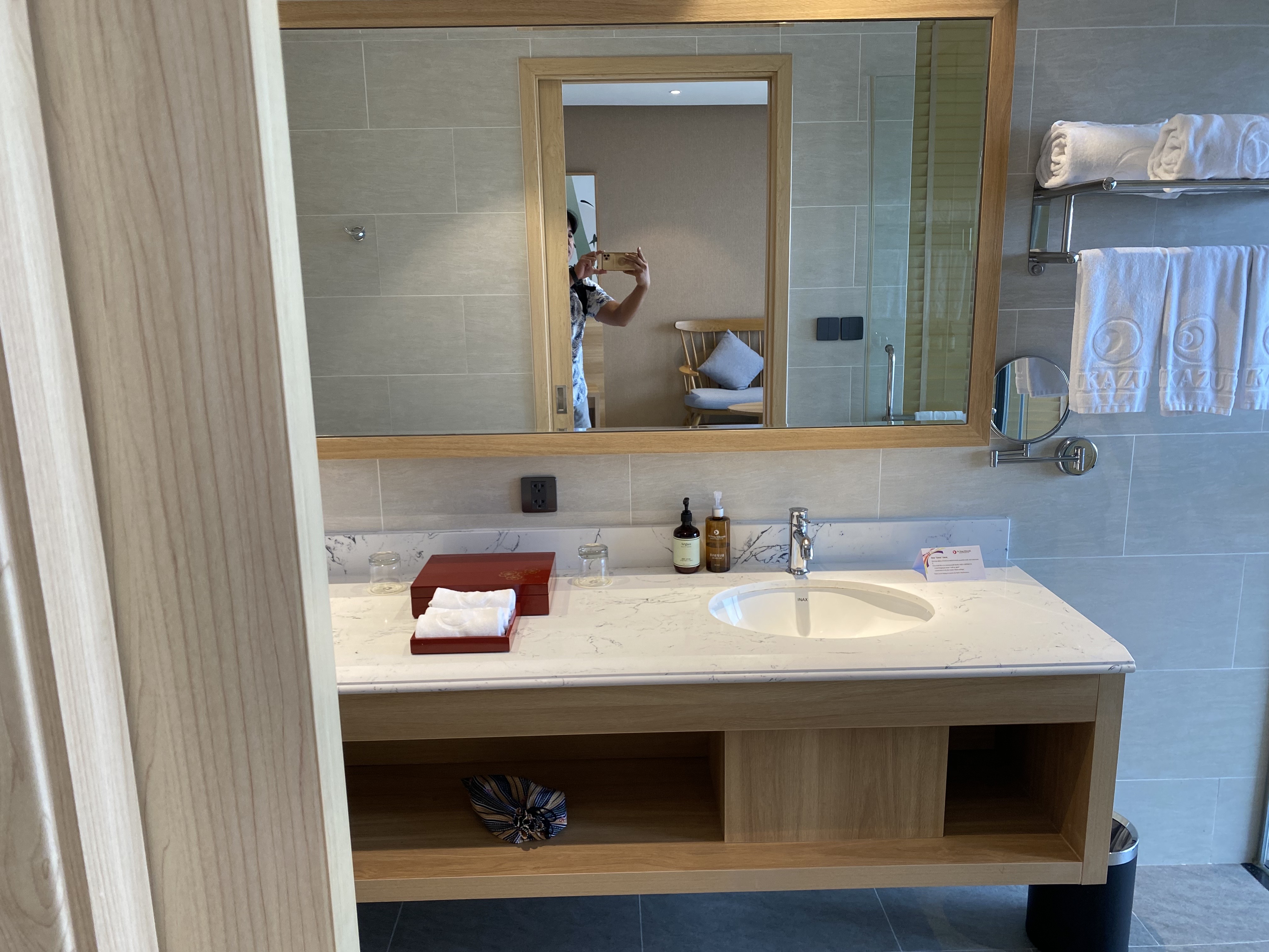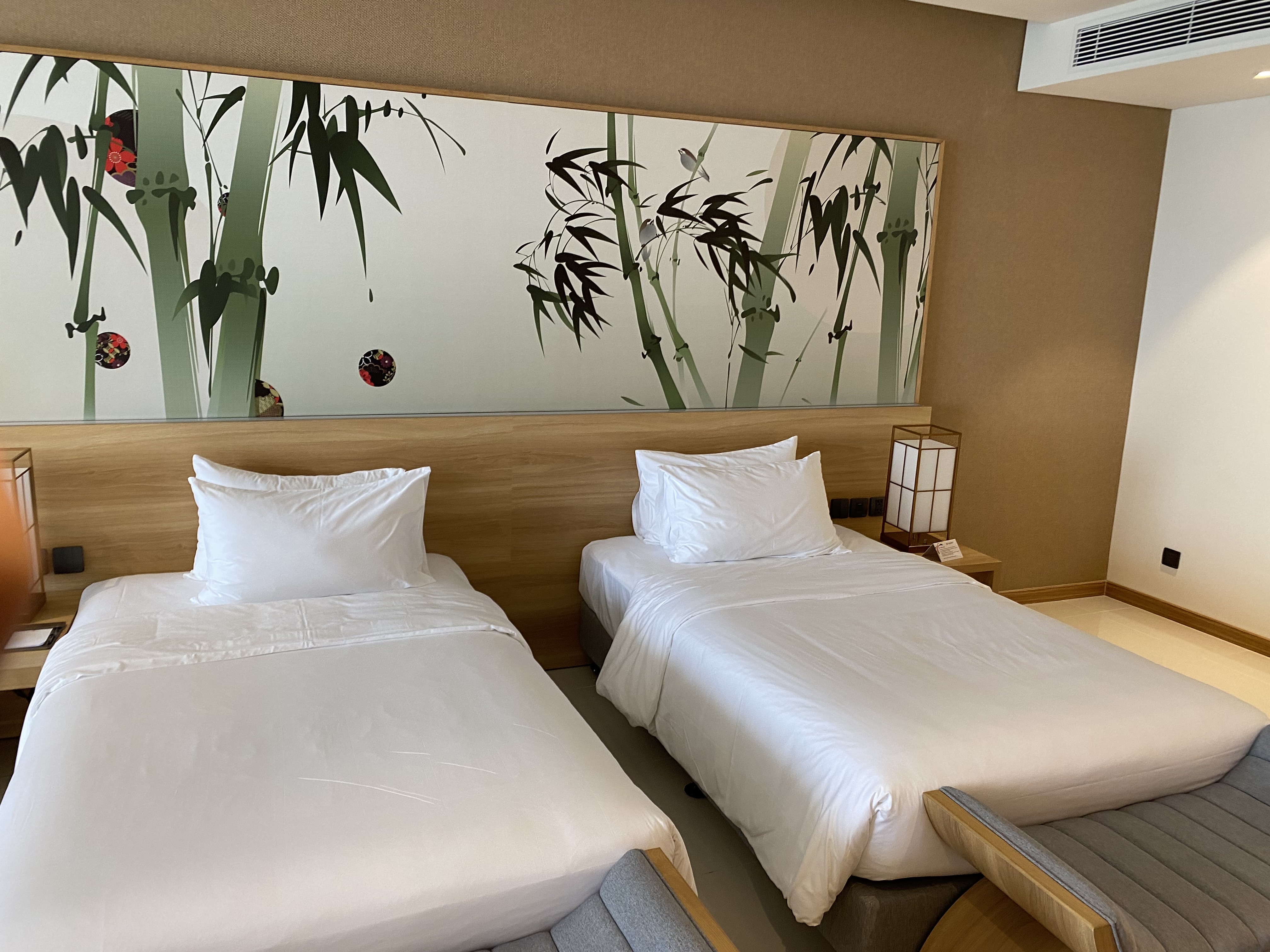 디럭스 스위트룸 오션뷰는 싱글베드 2개, 비데, 욕조, 테라스, 우산, 옥실용품, 금고 등이 제공됩니다. 확실히 넓고 깔끔해서 서 너무 좋습니다. 아이가 침대에서 떨어지기 걱정되면 침대를 붙여서 주무셔도 됩니다.