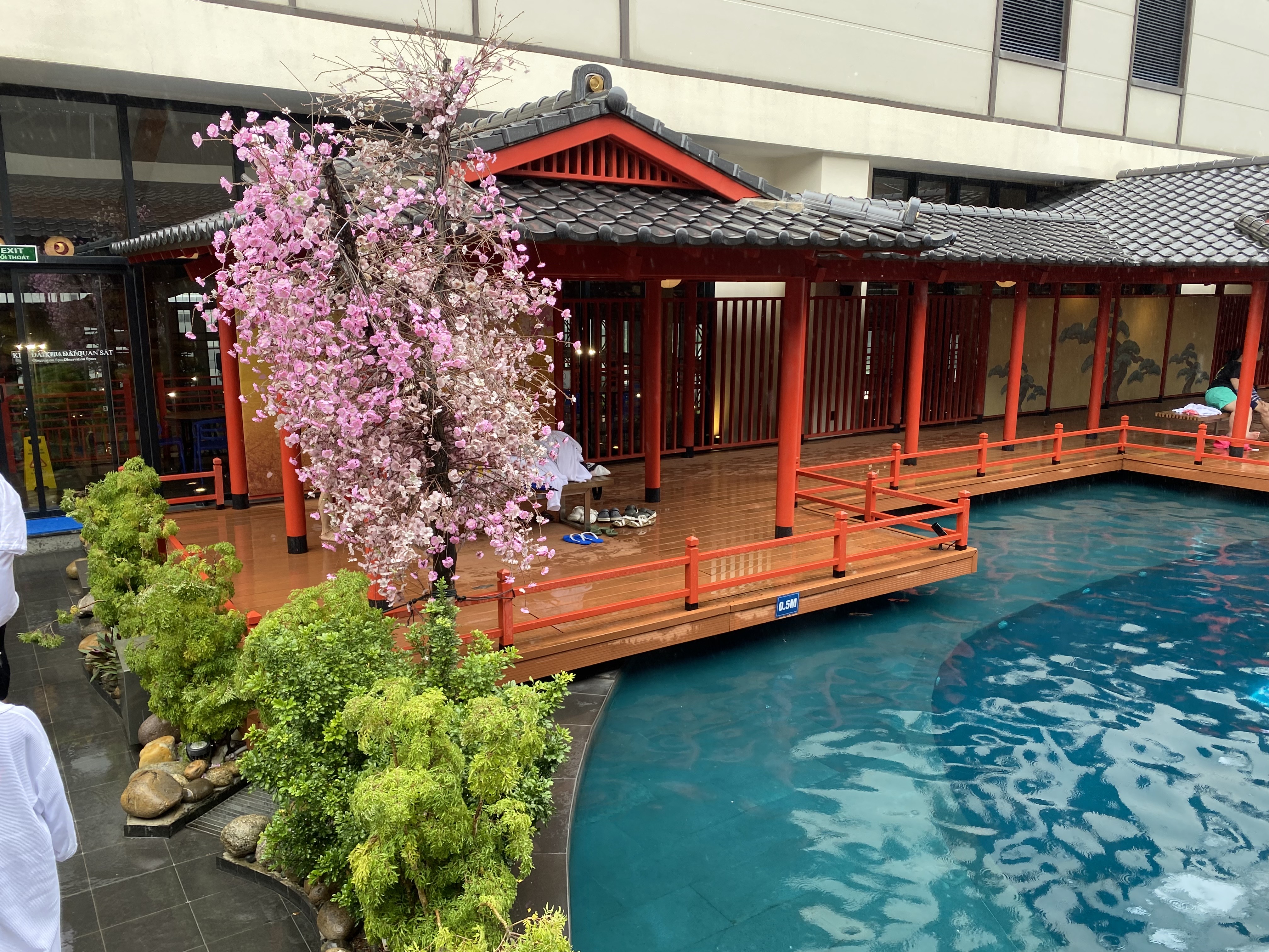 일본 전통의 온천이 워터파크 3층에 위치해 있습니다. 워터파크에서 신나게 놀고 몸 좀 녹이고 싶으면 바로 이어져 있어서 온천을 이용하실 수 있습니다.