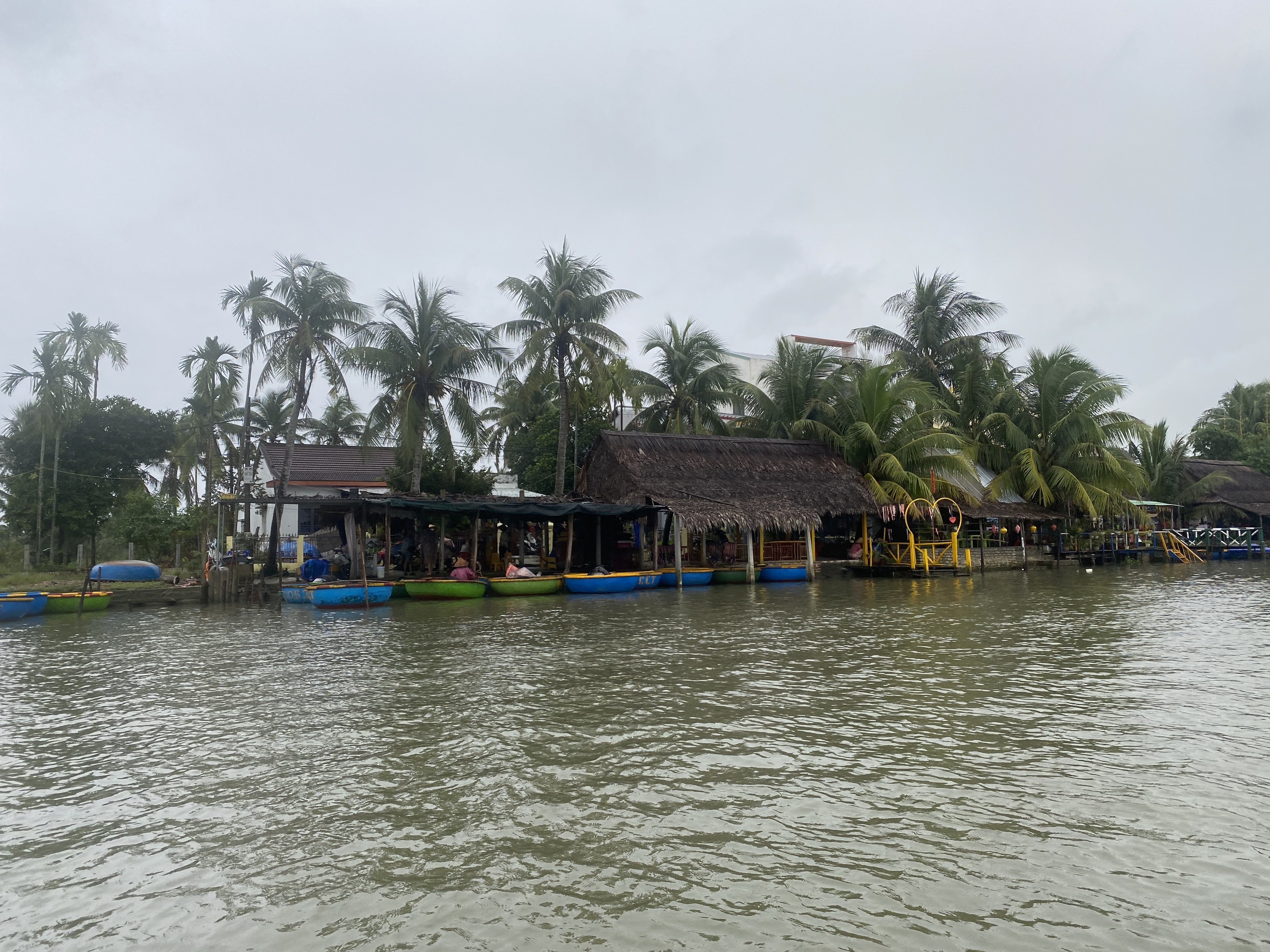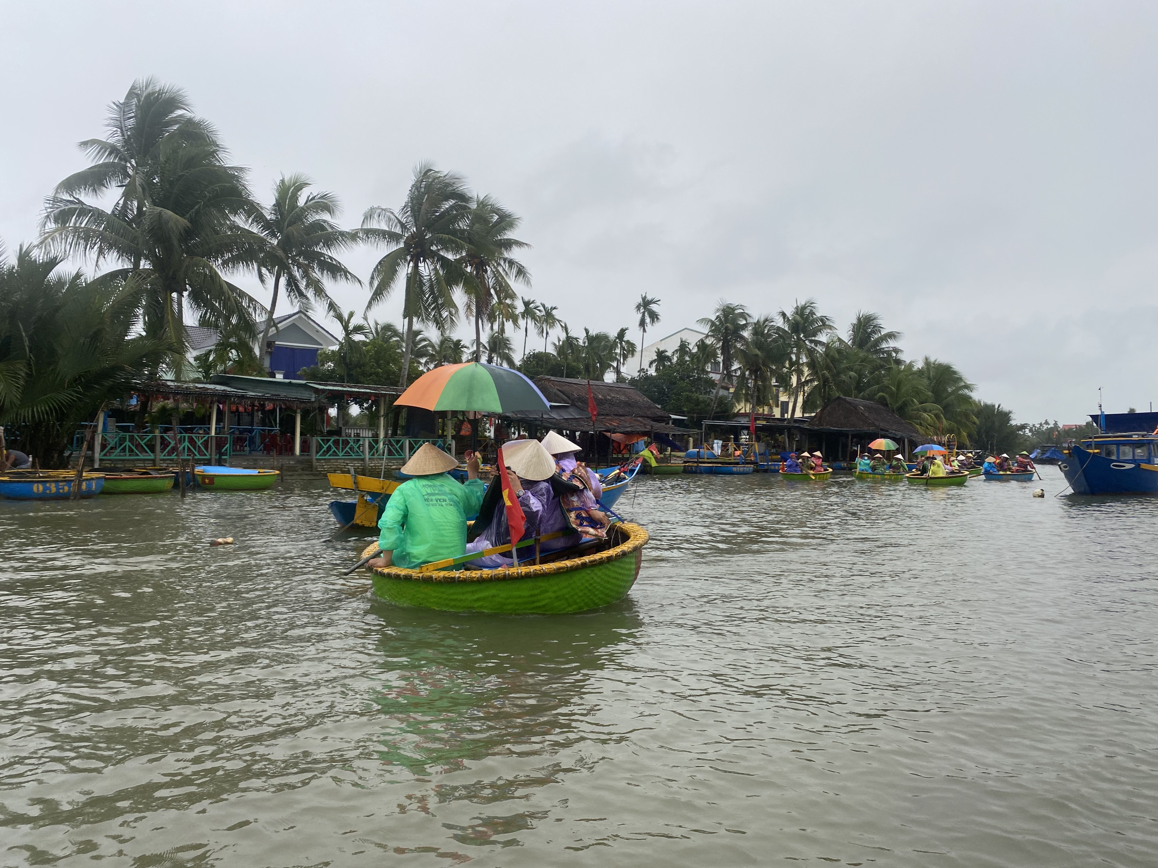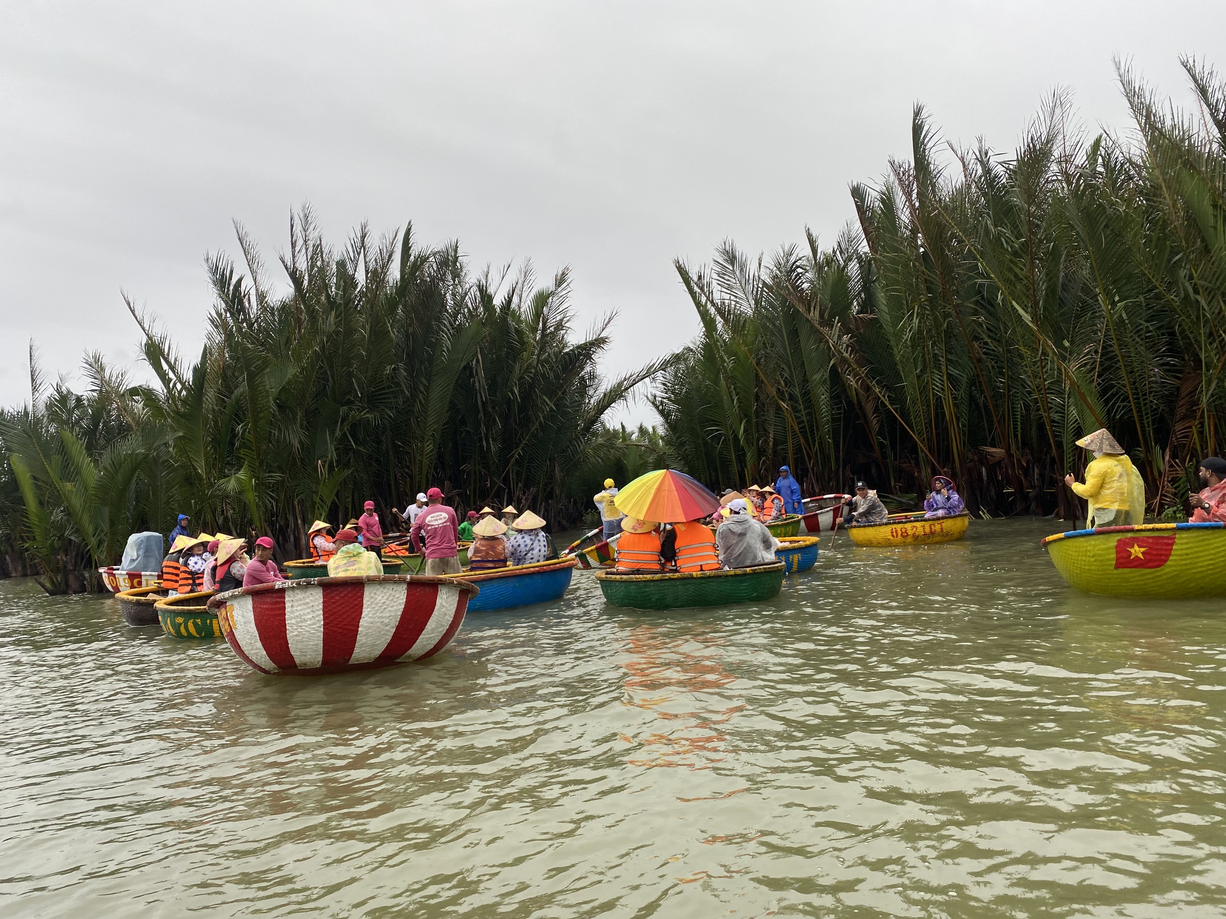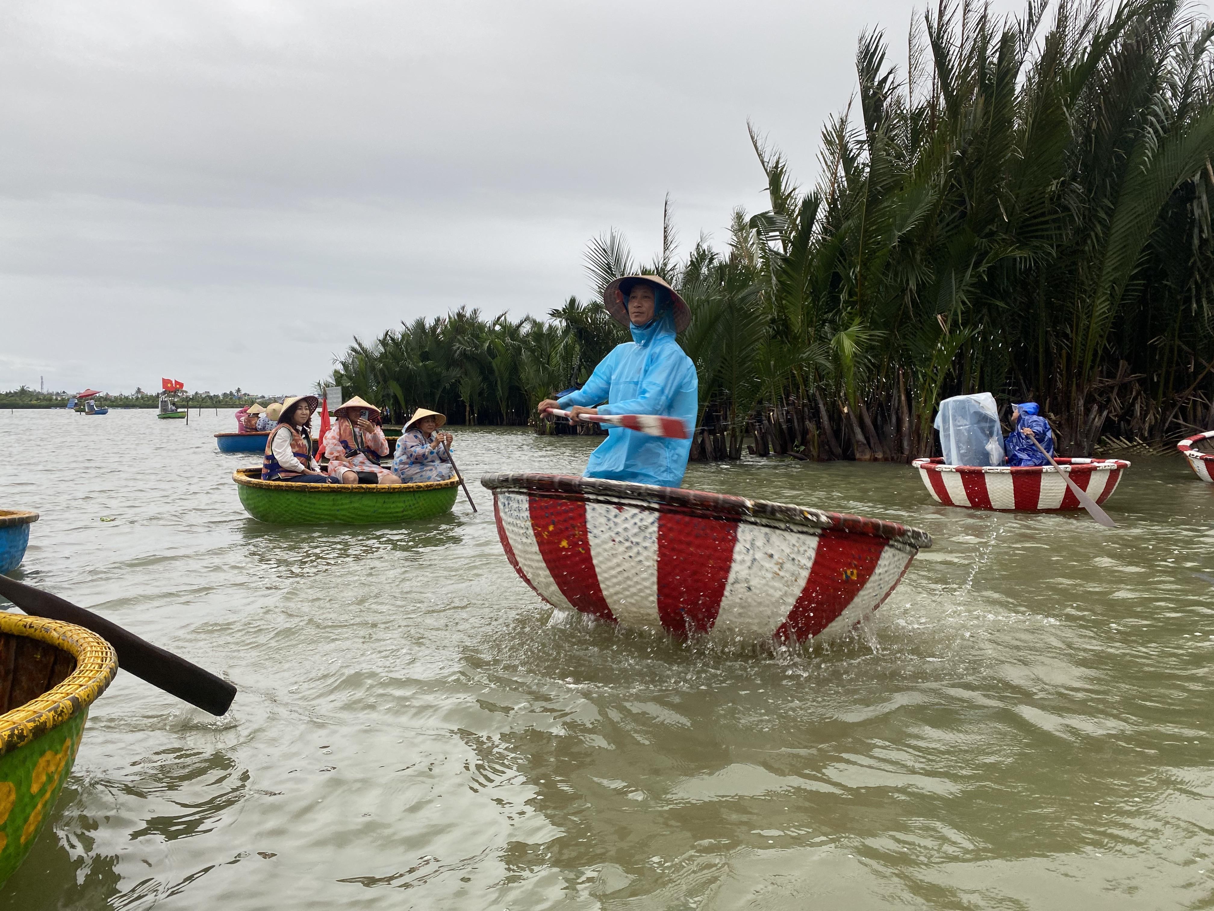 바구니배를 체험하러 온 관광객들이 많아서 업체들이 굉장히 많습니다. 바구니배는 바구니 모양을 닮아서 불리고 있는 베트남 전통 보트입니다. 코코넛 나무로 만들어서 튼튼합니다. 제가 몸무게가 많이 나가는대도 불구하고 잘 떠다니더라구요.