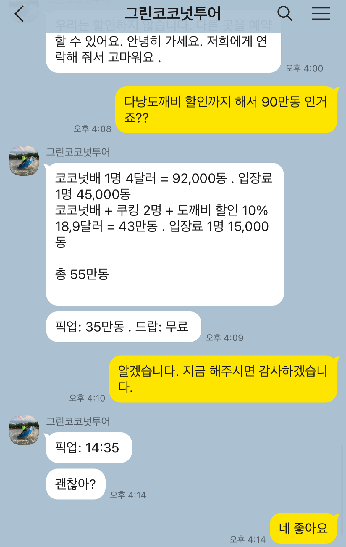 그린코코넛투어 바구니배 후기