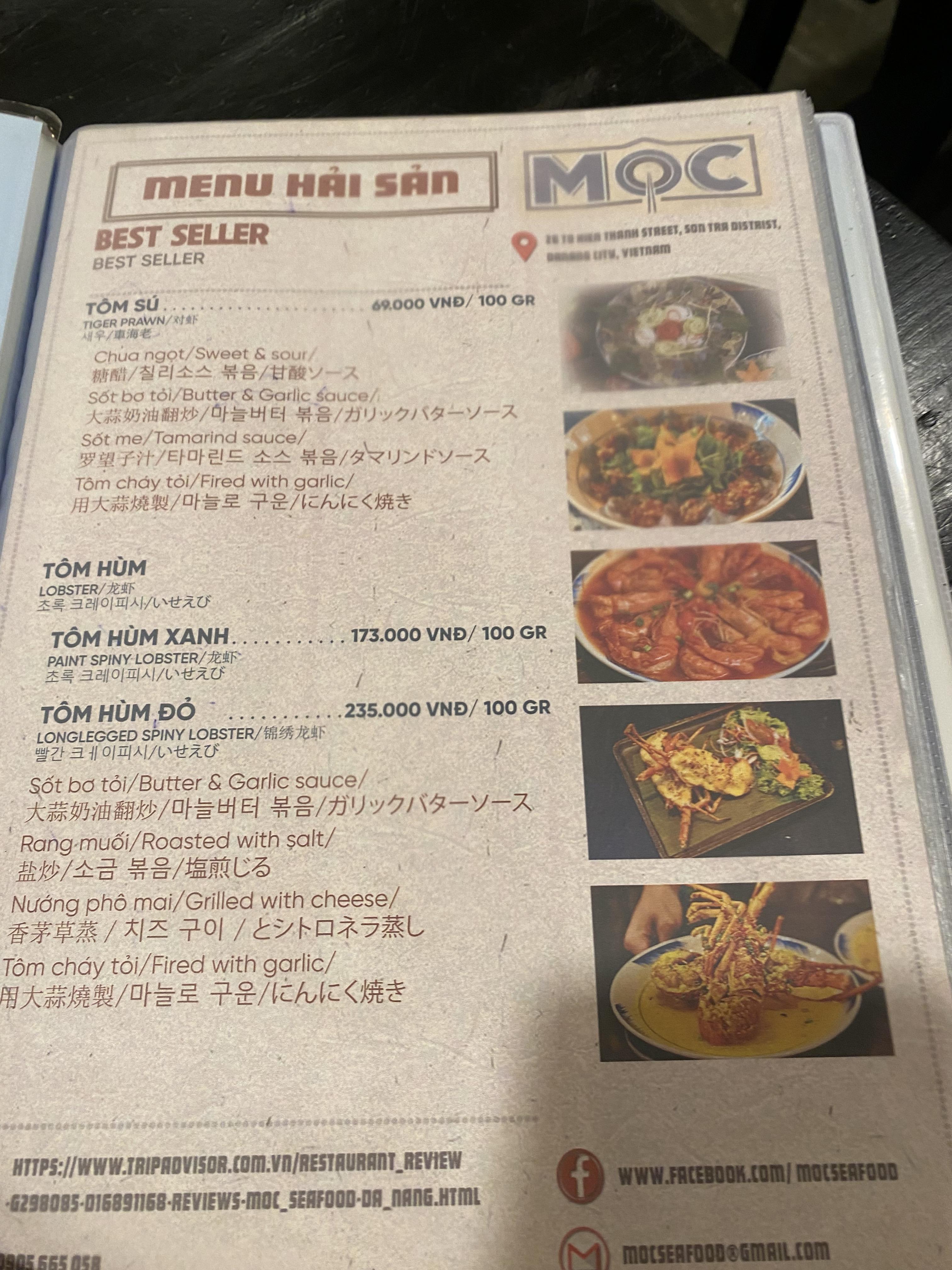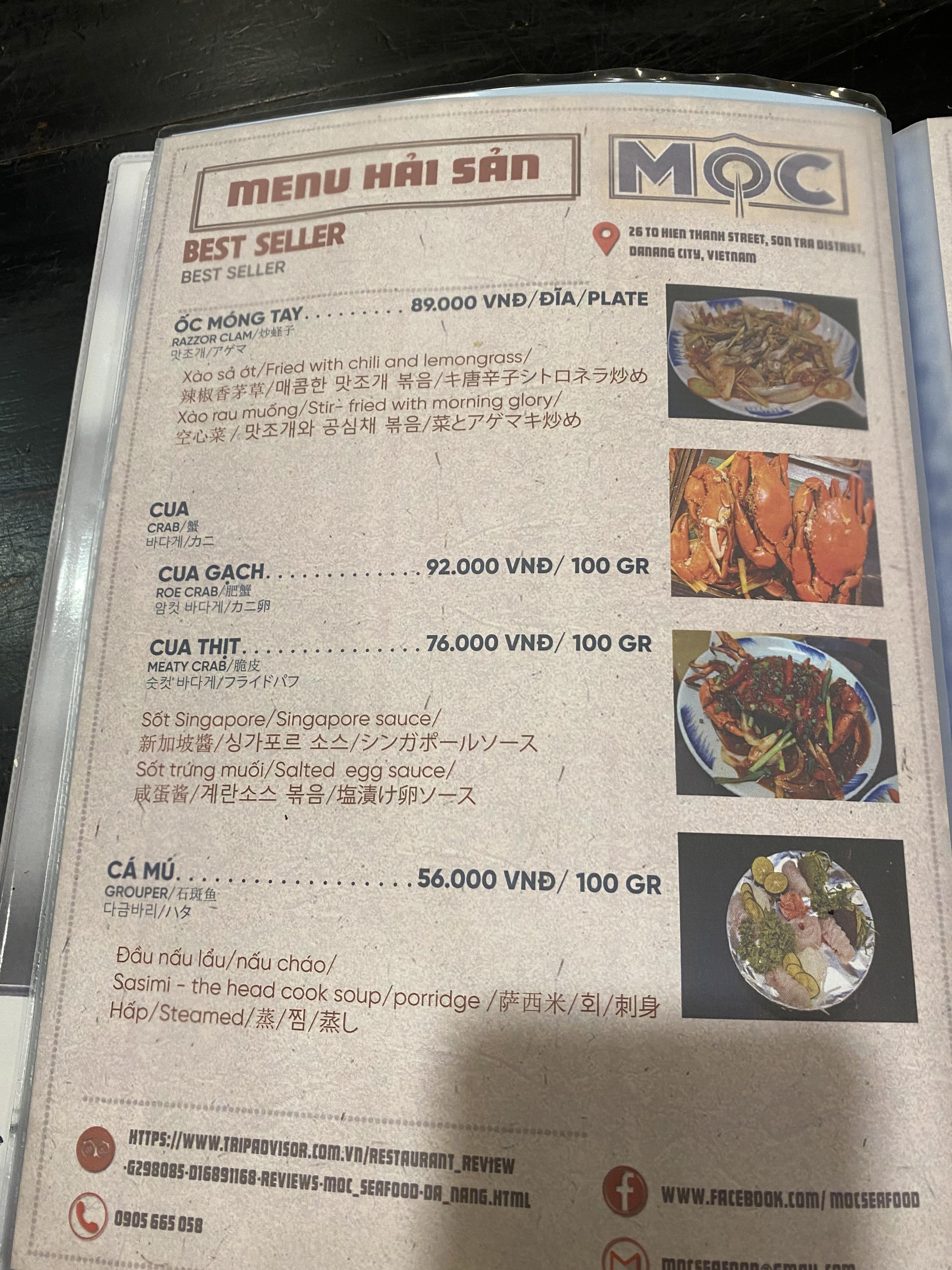 예약은 카카오톡 채널 "다낭 목 해산물식당"