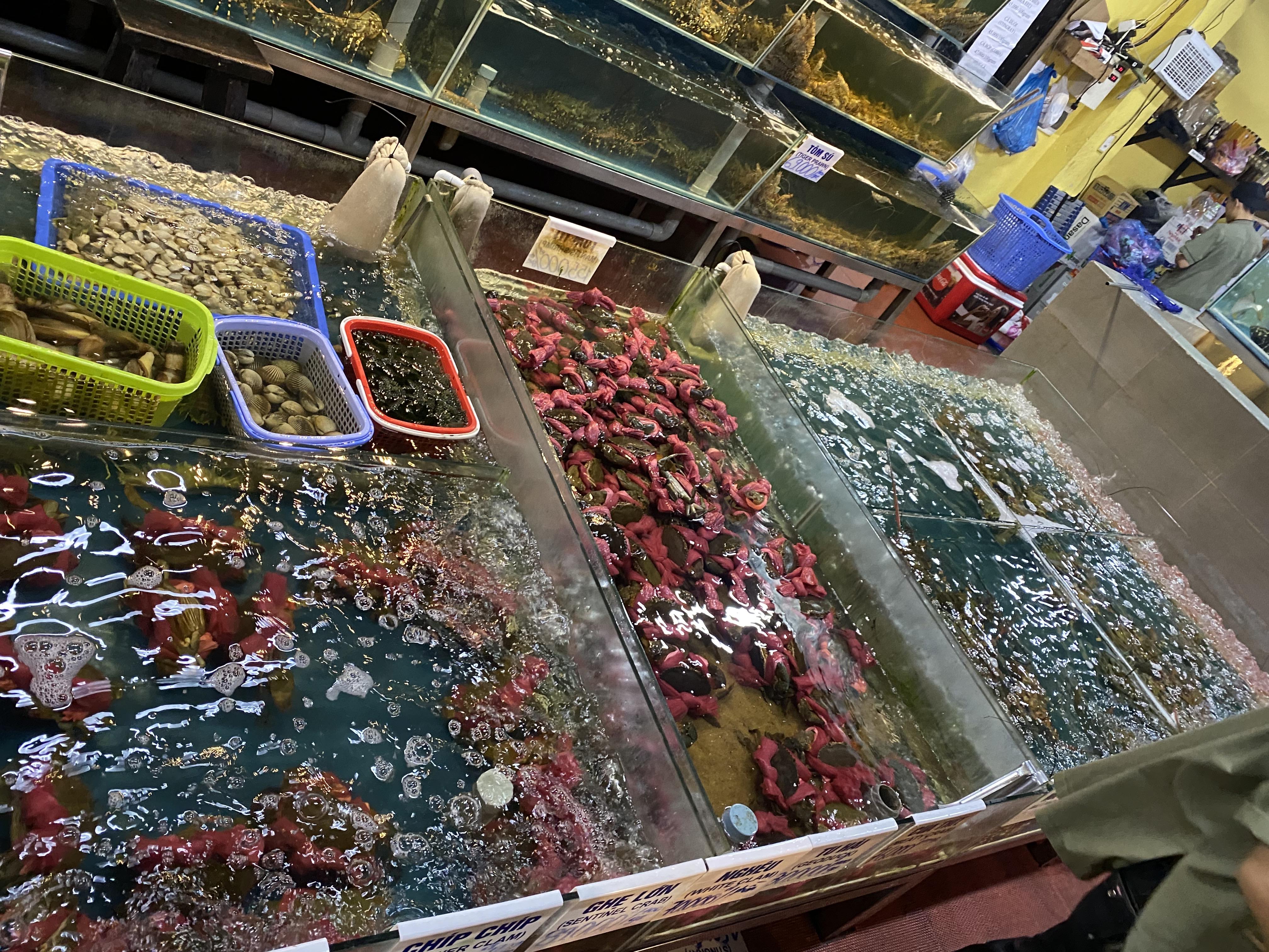 해산물 맛집답게 식당 안에 수산시장처럼 수산물들이 가득 채워져 있습니다. 싱싱한 게, 가재 등등이 비치되어 있습니다.