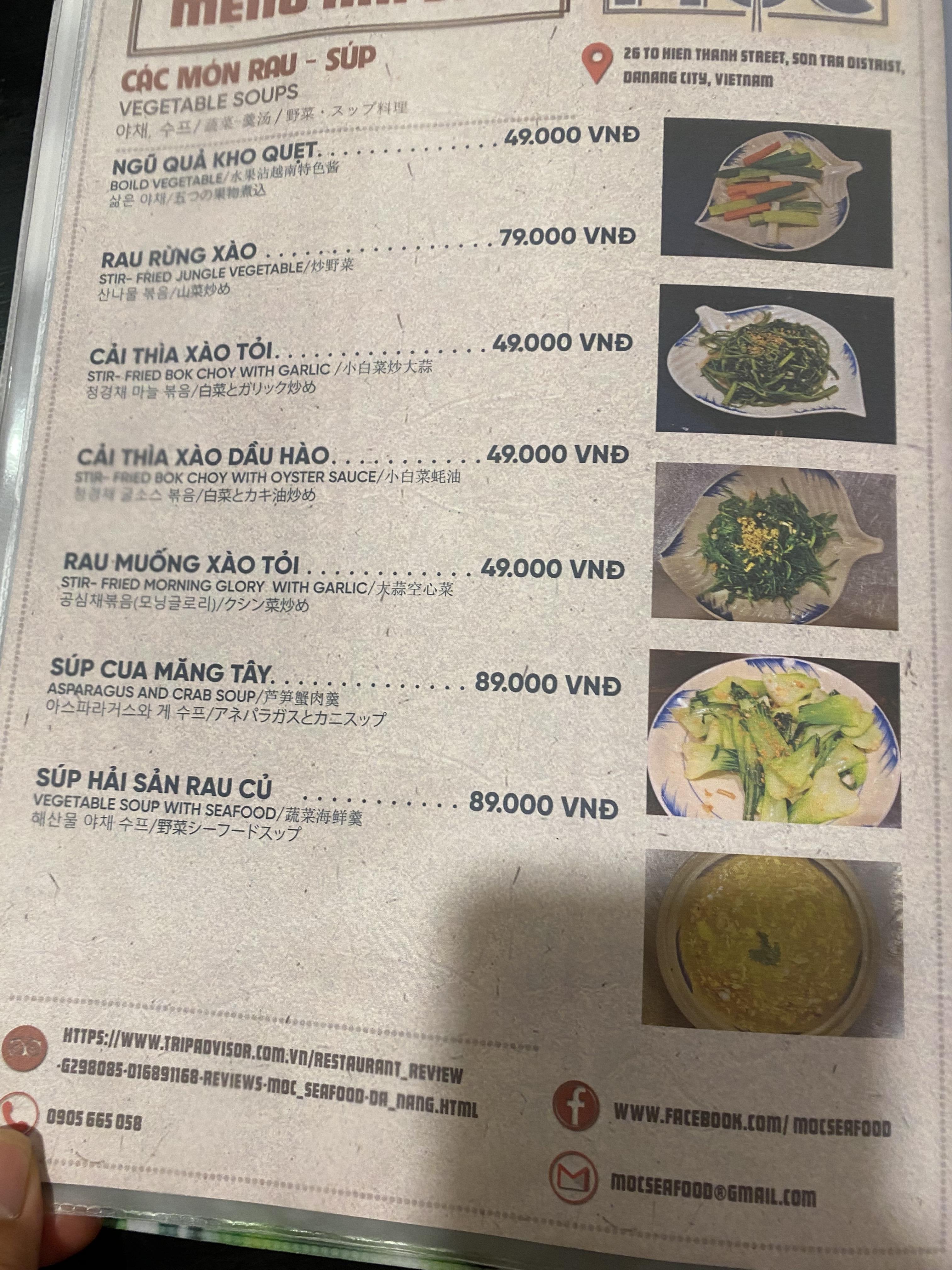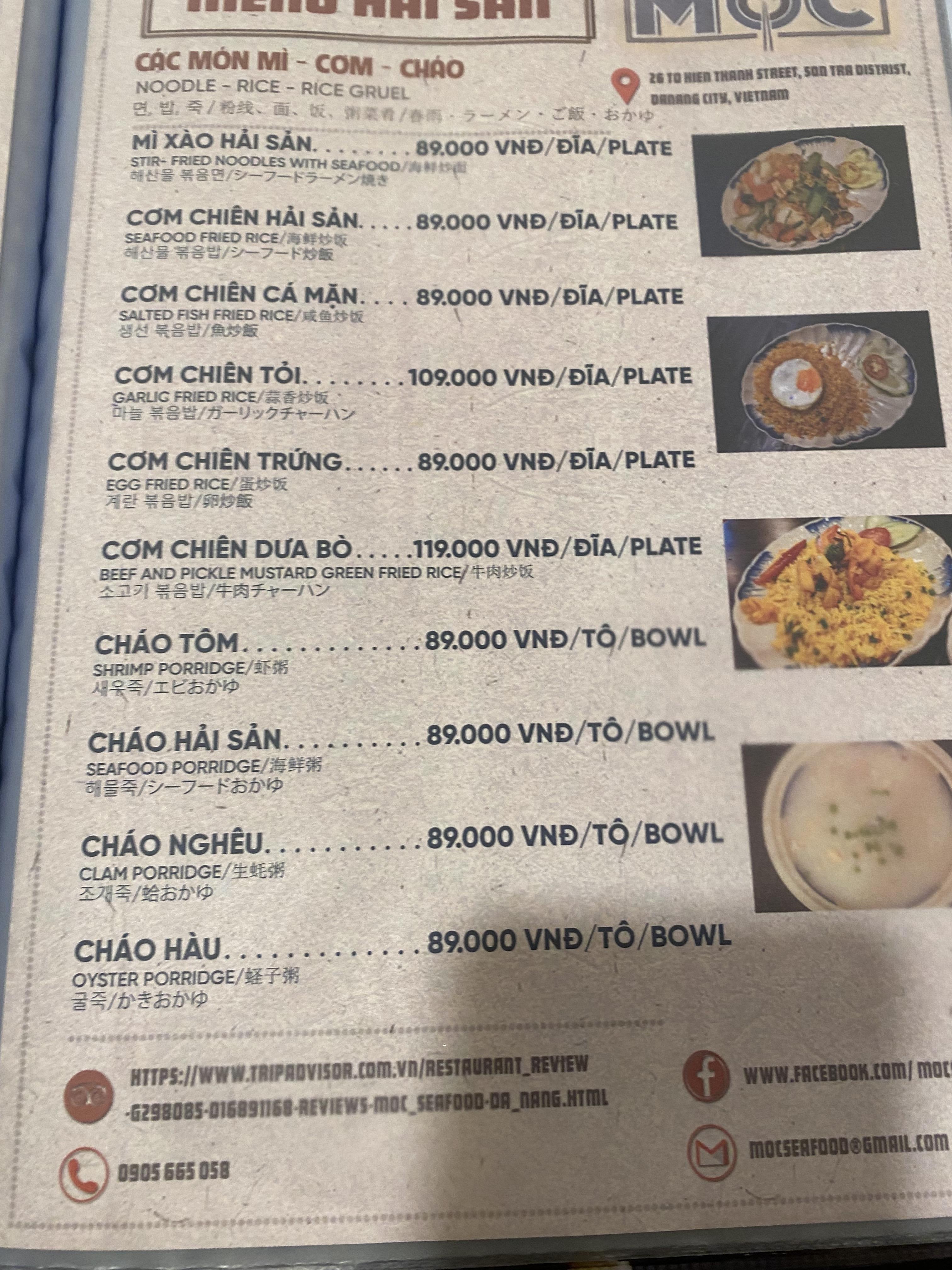다낭 목식당 메뉴