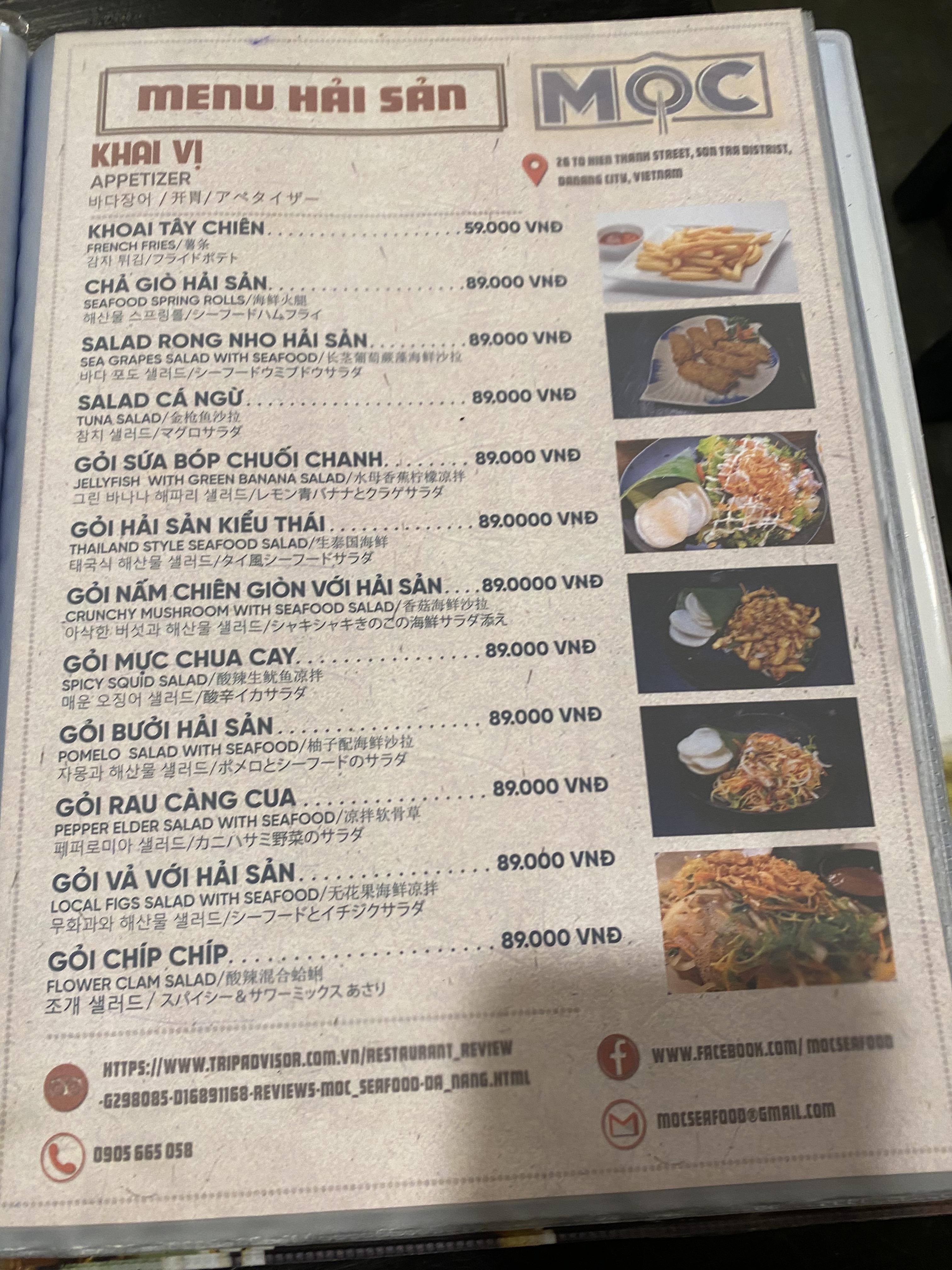 예약은 카카오톡 채널 "다낭 목 해산물식당"