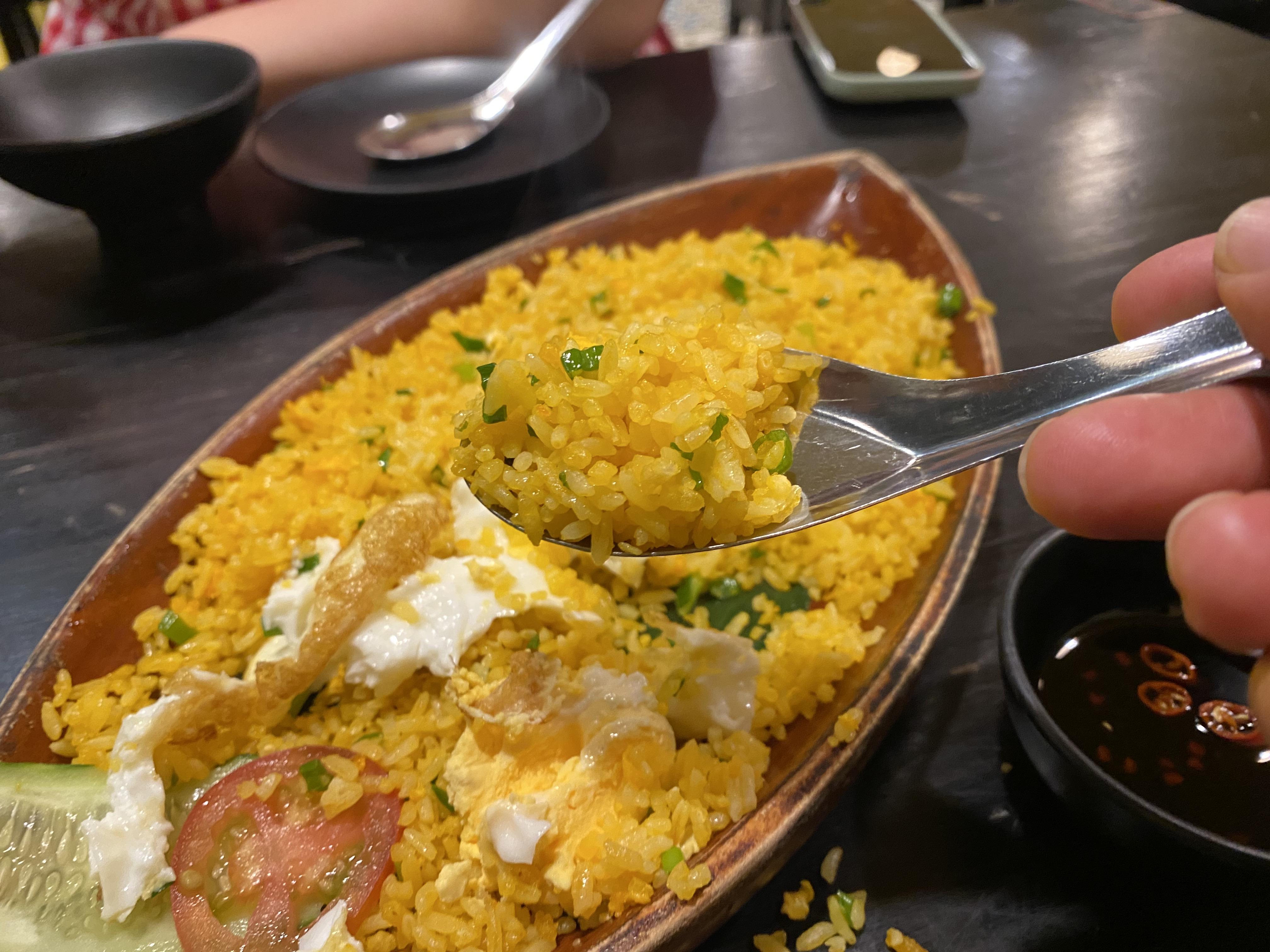 마늘볶음밥은 소스를 찍어서 먹으면 맛있습니다.