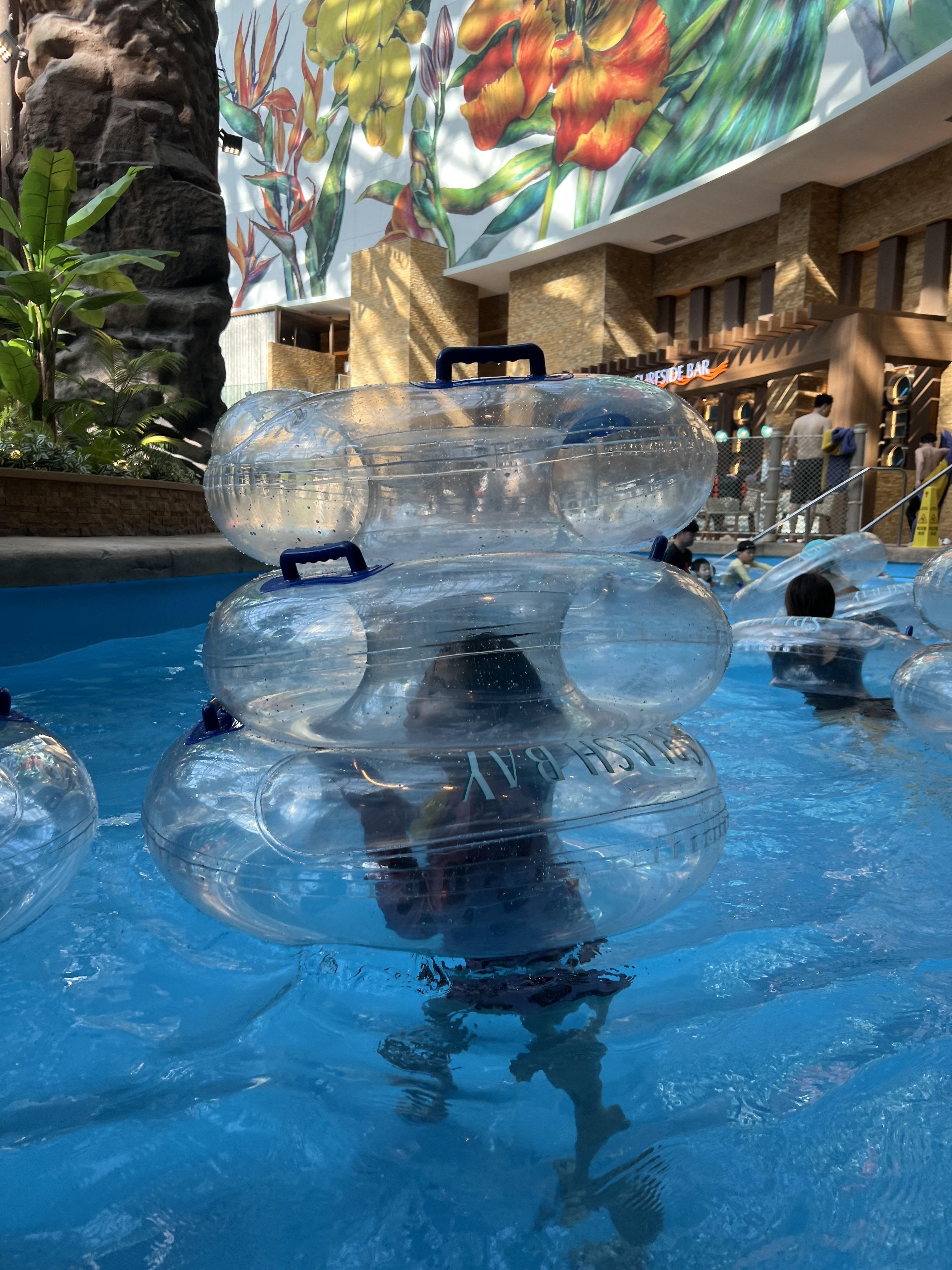 인스파이어 리조트 스플래쉬 베이의 가장 대표적인 유수풀인 레이지 리버는 가장 즐길 수 있는 곳이었습니다. 튜브도 많이 있어서 튜브에 기대에 편안히 물살을 따라 이동할 수 있습니다.