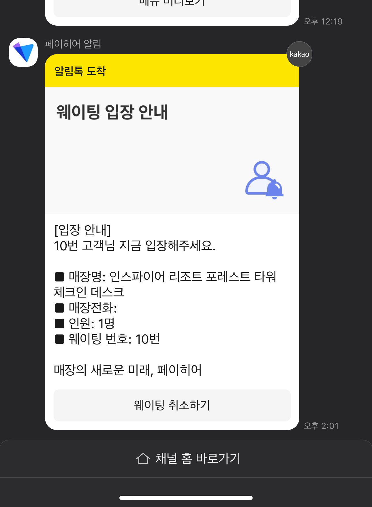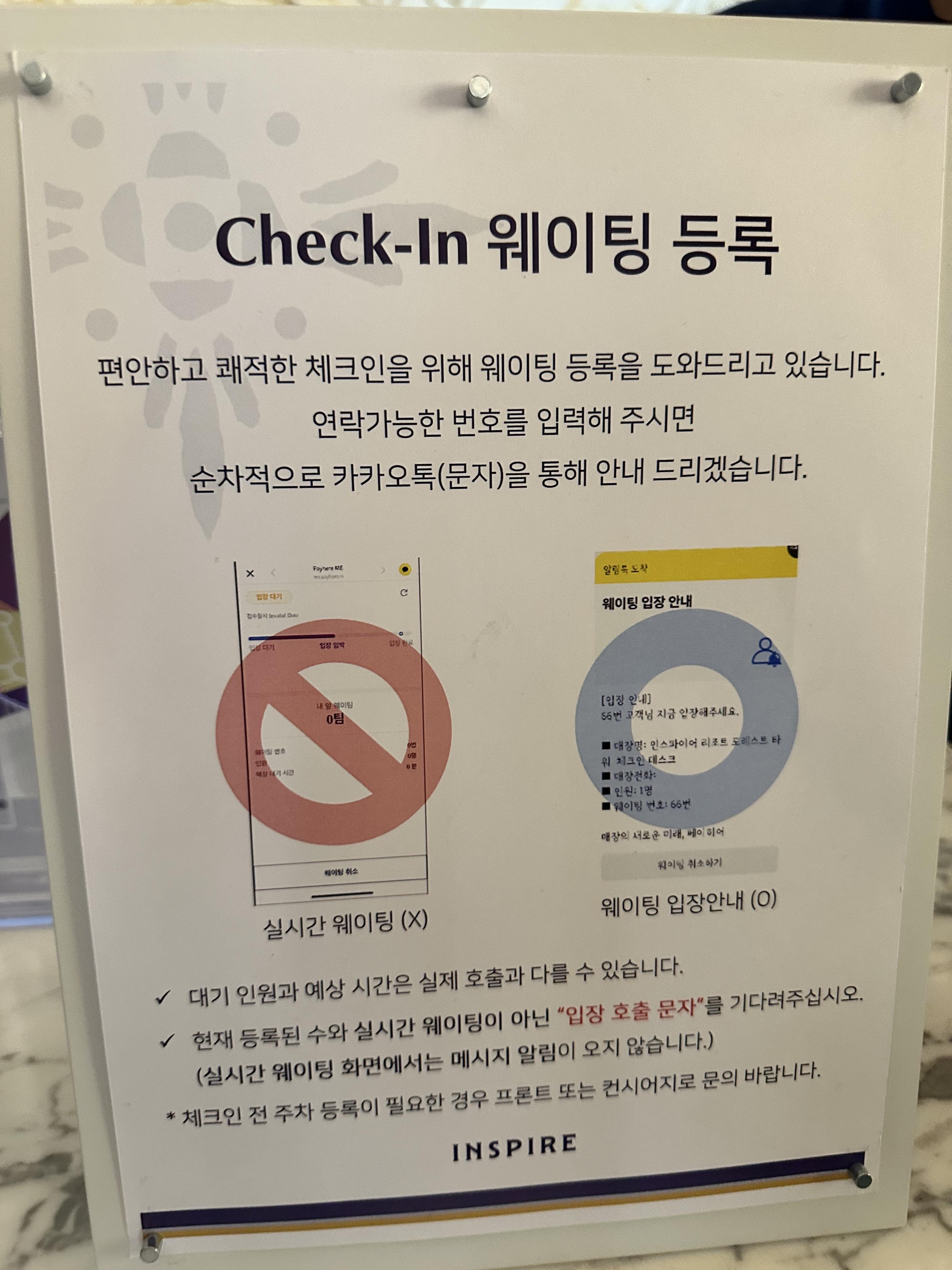 2. 체크인을 12시 웨이팅 등록 후 쇼핑 가능, 카톡 알림 받은 후 체크인 2시 이후부터 가능