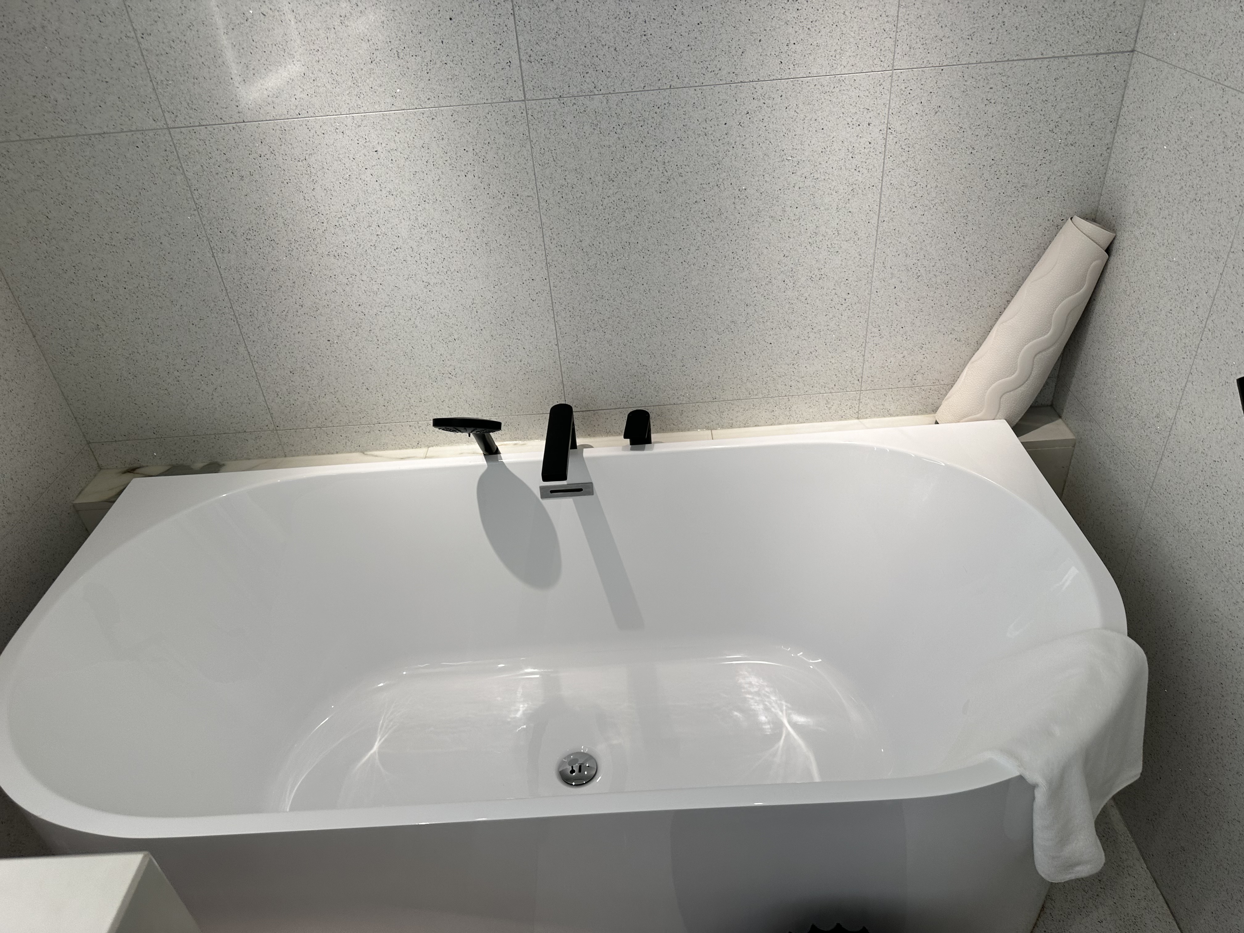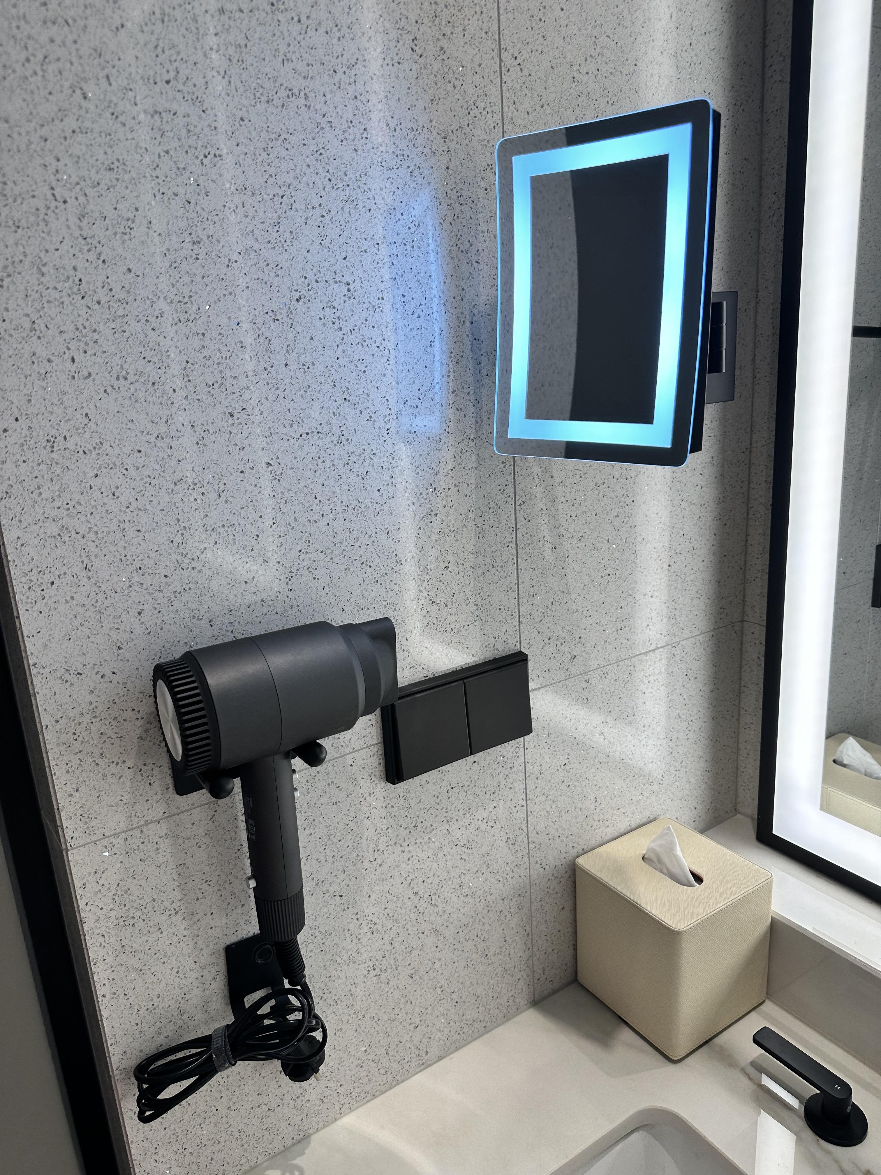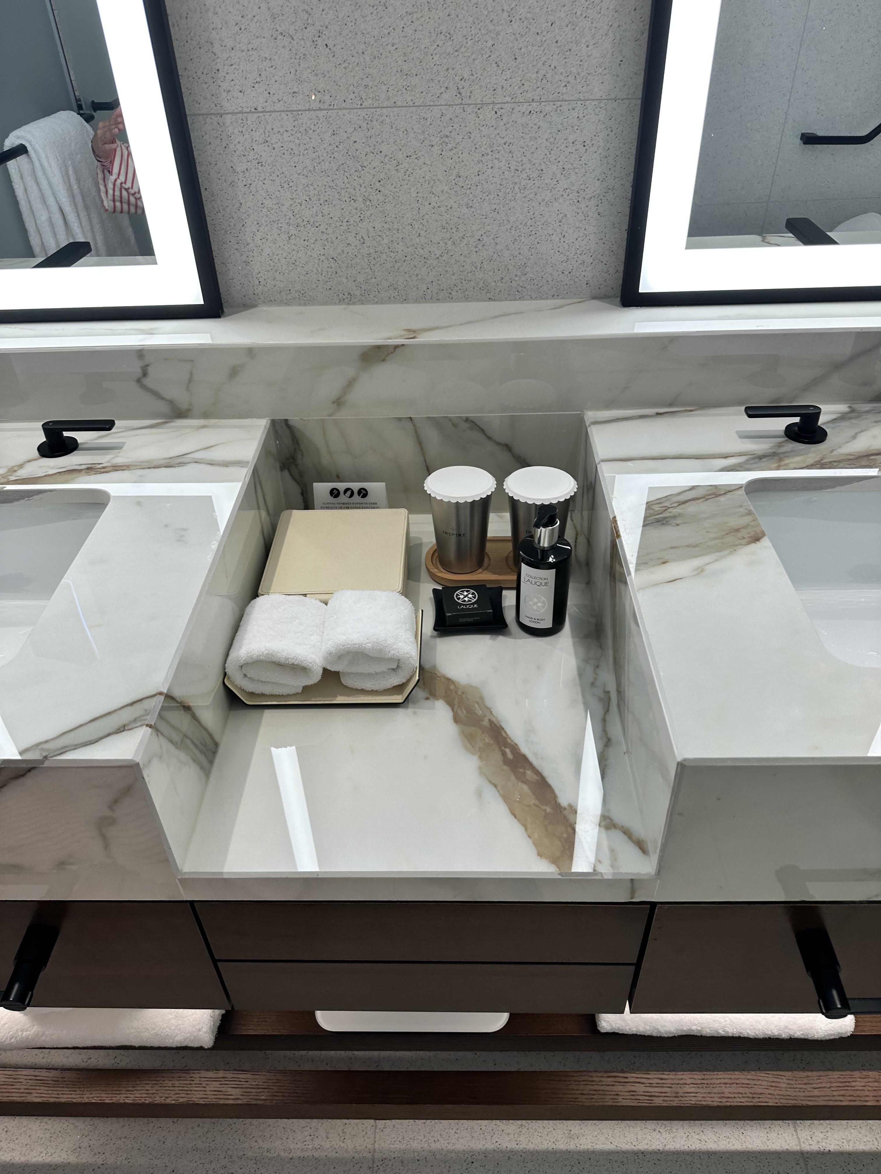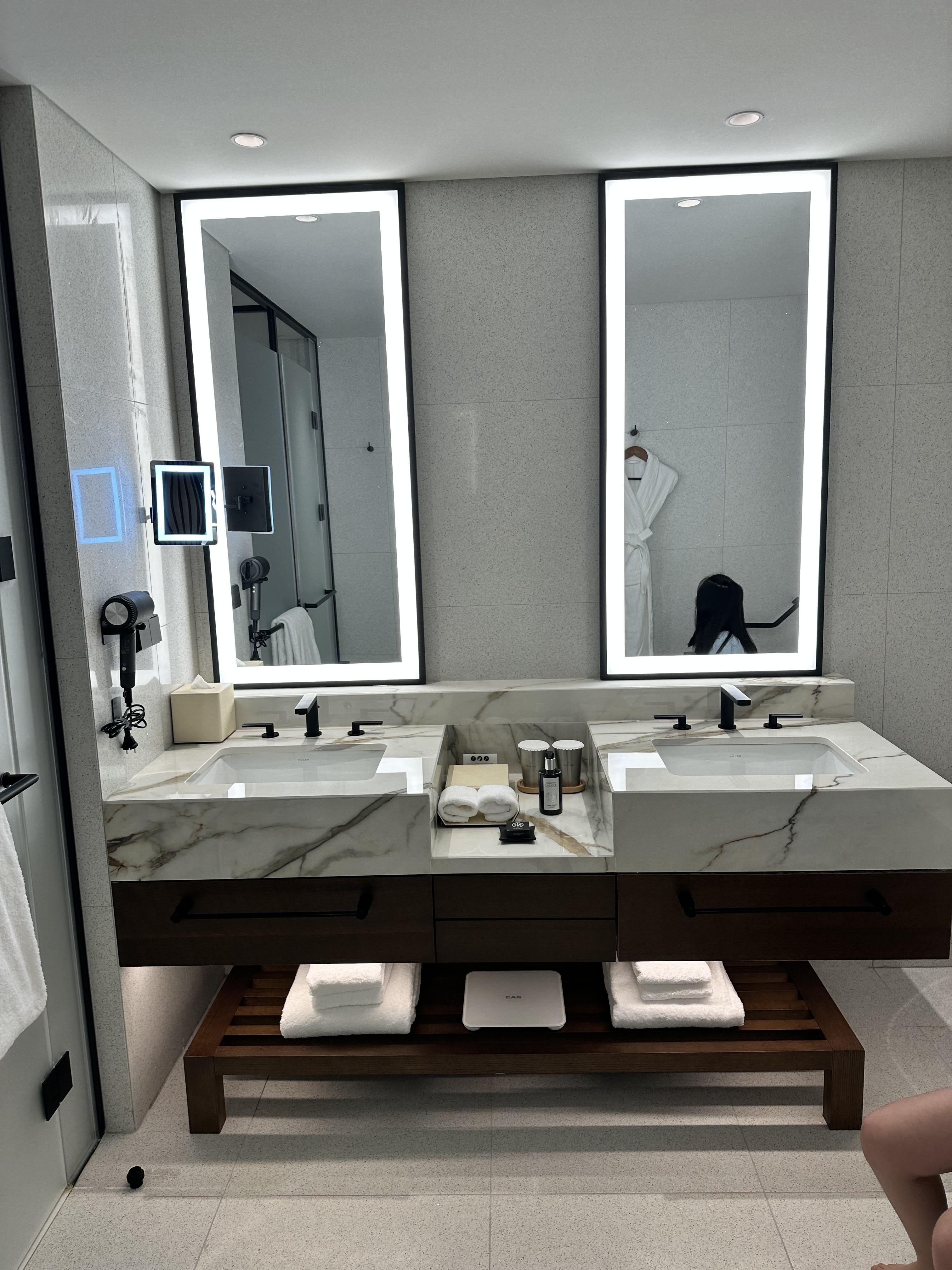 화장실이 굉장히 넓고 깔끔했습니다. 호텔급 인테리어에 고급 마감재로 너무 마음에 들었습니다. 특히 거울 조명과 최첨단 변기에 두 번 놀랐네요.