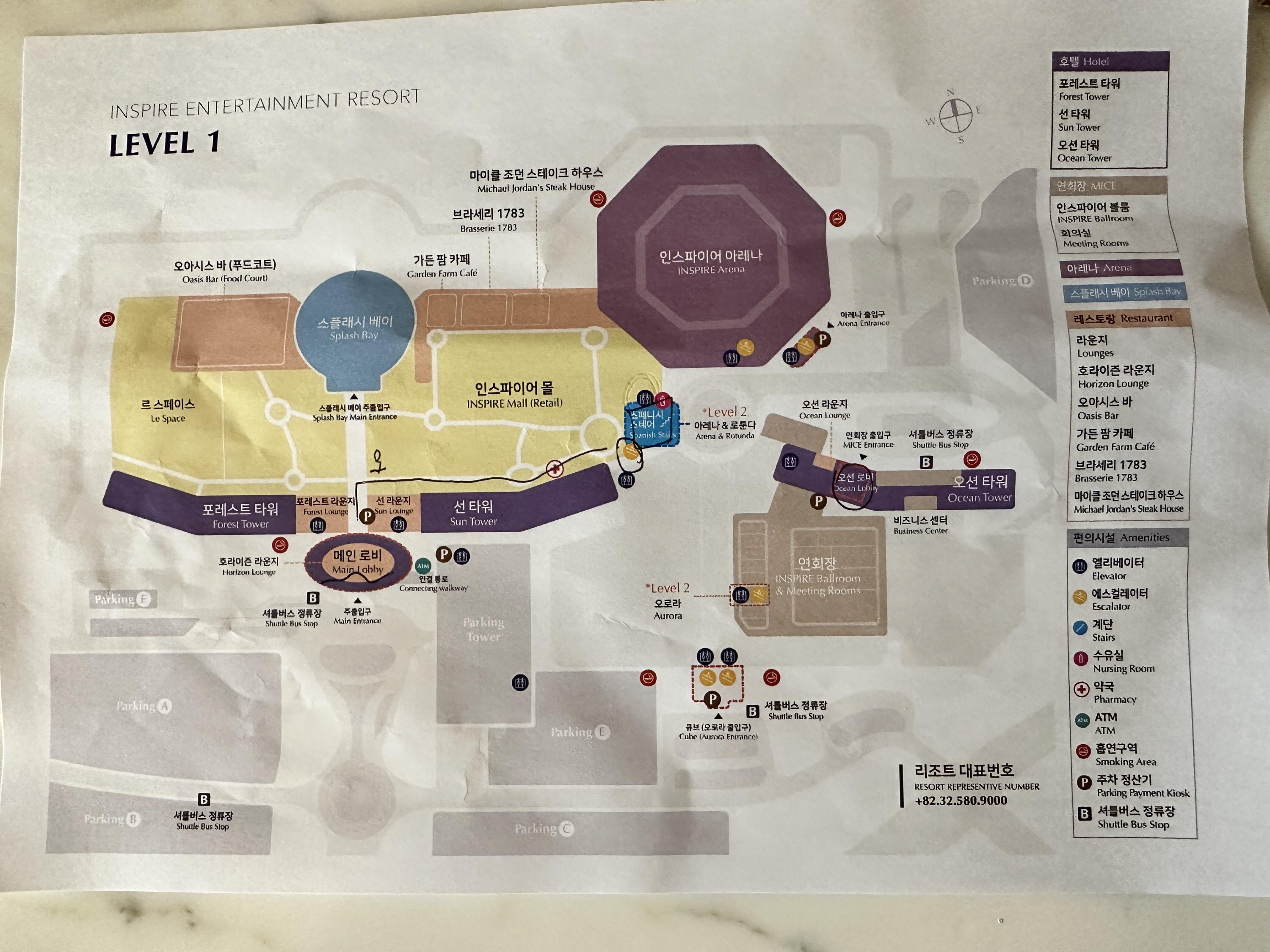 체크인 시 직원분께서 안내사항과 지도를 주면서 친절히 설명을 해줍니다. 저희는 오션타워를 예약해서 메인 체크인 로비에서 가는 길을 설명해 주셨습니다. 오션타워는 오로라를 볼 수 있는 곳 바로 옆에 입장할 수 있는 문이 있습니다.