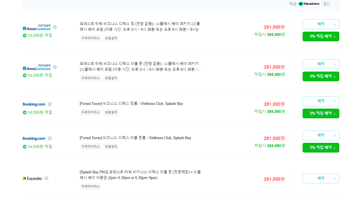 포레스트 타워, 썬타워, 오션타워! 그리고 스플래쉬 및 조식 포함