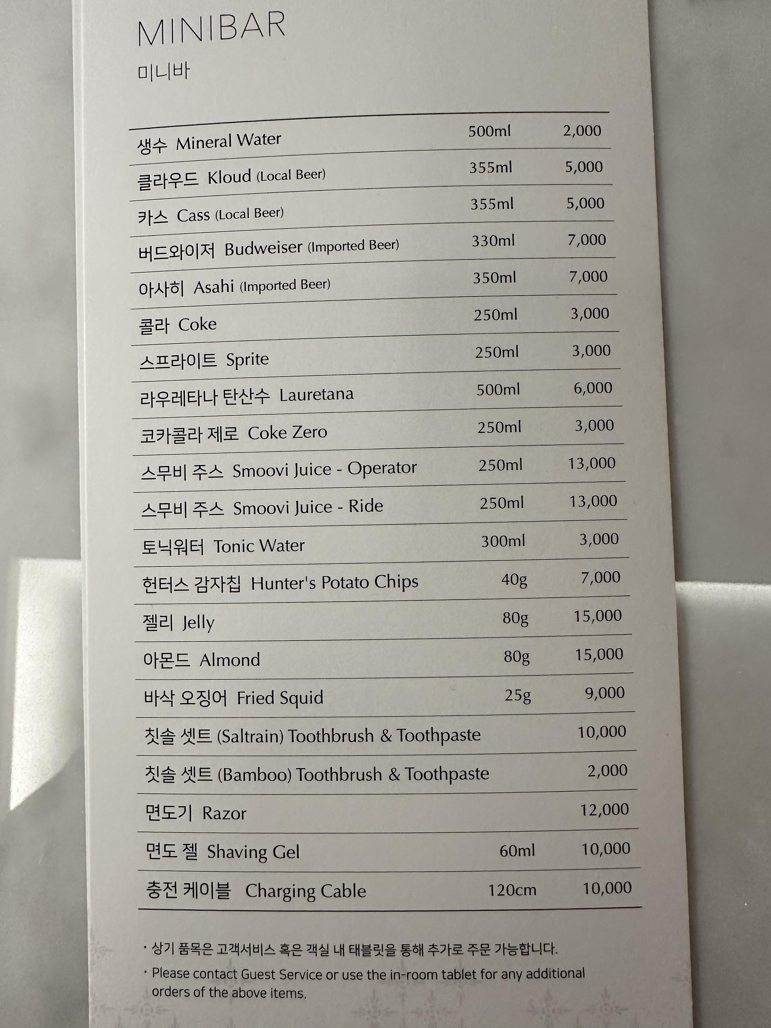 미니바 가격은?