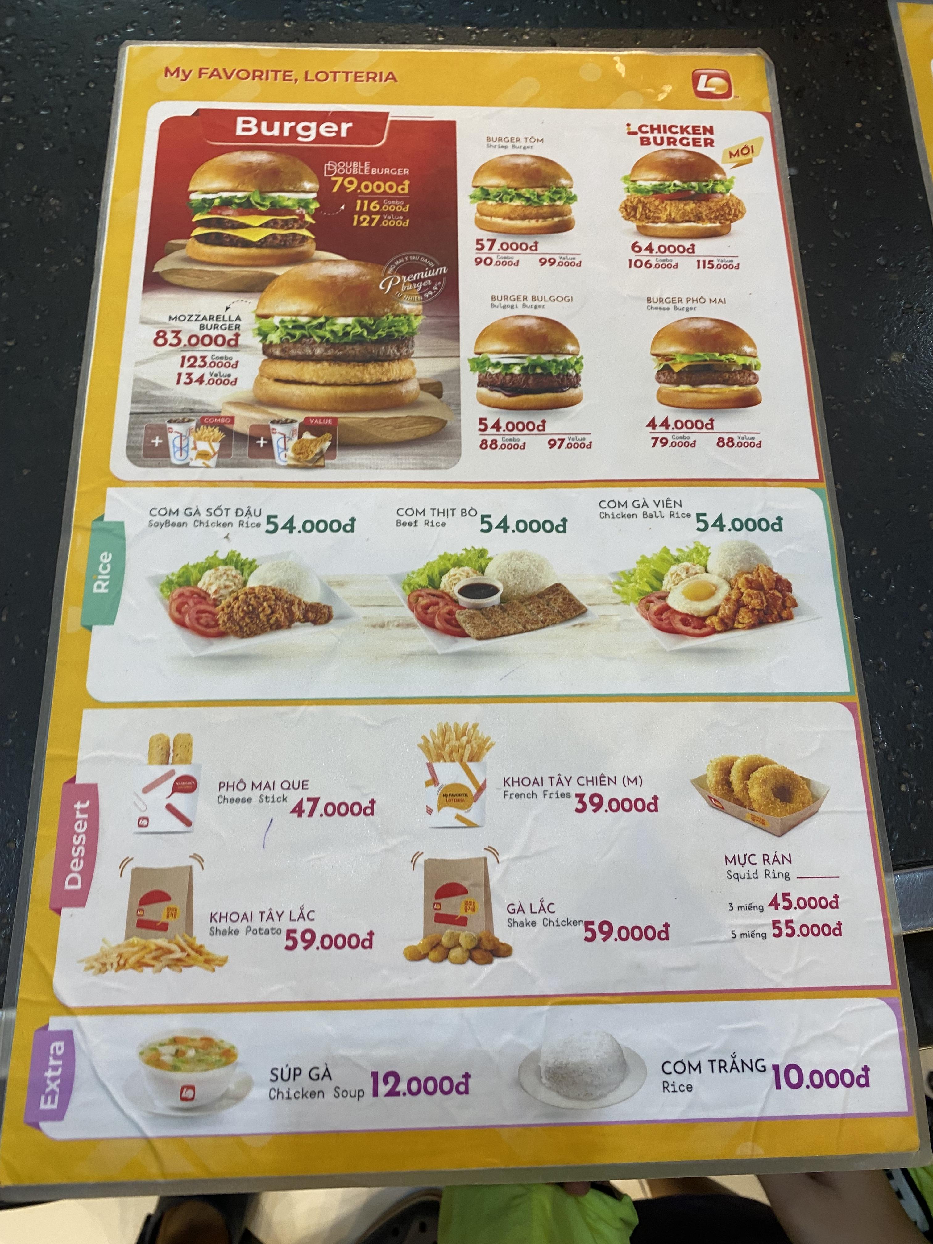 바나힐 정상에 레스토랑이 정말 많은데 그냥 무난하게 먹을 메뉴를 고르신다면 롯데리아를 추천드립니다. 사실 저희 베트남 전통음식을 그전에 많이 먹어서 그런지 햄버거가 더욱 당겨서 그런지 맛있게 먹었습니다.