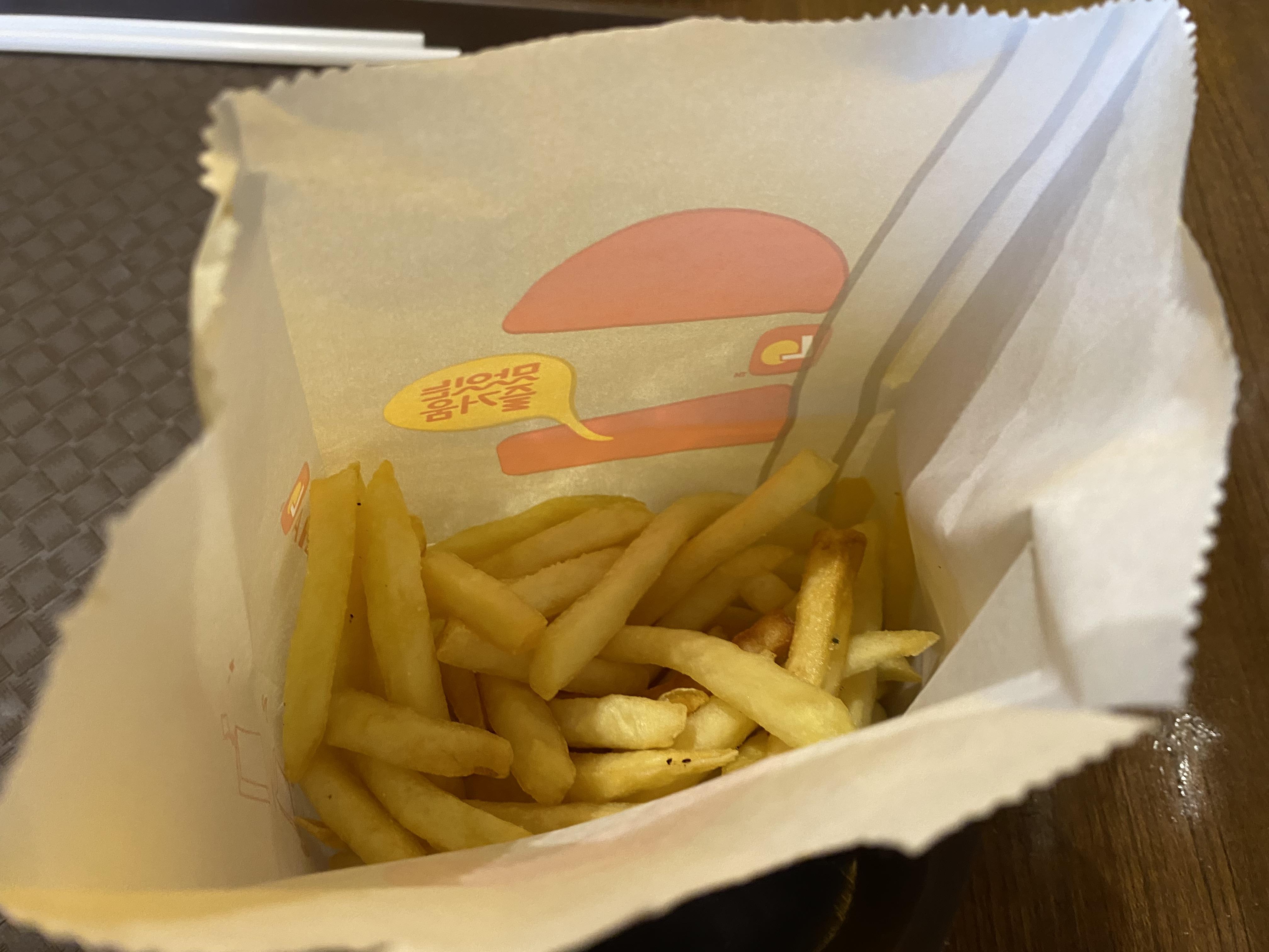 감자튀김은 소스가루와 함께 나와서 쉐이크해서 먹으면 됩니다. 한국에서 먹는 감자튀김과 같은 맛이었습니다.