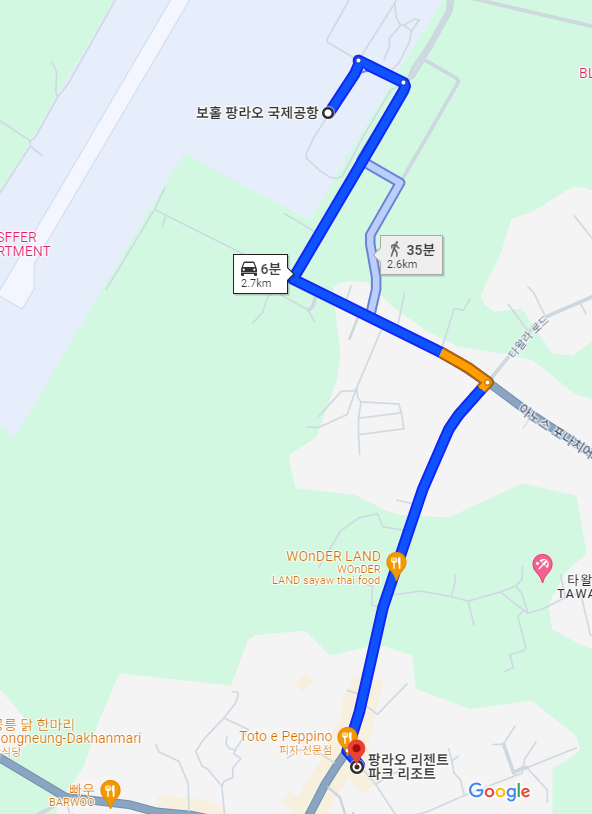 팡라오 리젠트 파크 리조트 위치는 보홀 국제공항에서 차로 6분정도 소요되는 곳에 위치해 있습니다. 2.7km 정도 되니깐 새벽에 도착해서 톡톡이를 이용해서 이동하면 바로 숙소로 체크인해서 휴식을 취할 수 있습니다.