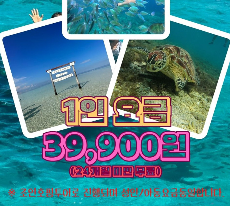 호핑투어 가격인 1인당 39,900원이며, 24개월 미만은 무료입니다. 코스는 버진 아일랜드에서 사진촬영 후에 발리카삭에서 스노쿨링을 하는 일정입니다. 한 3시간 정도 걸리는 코스입니다.