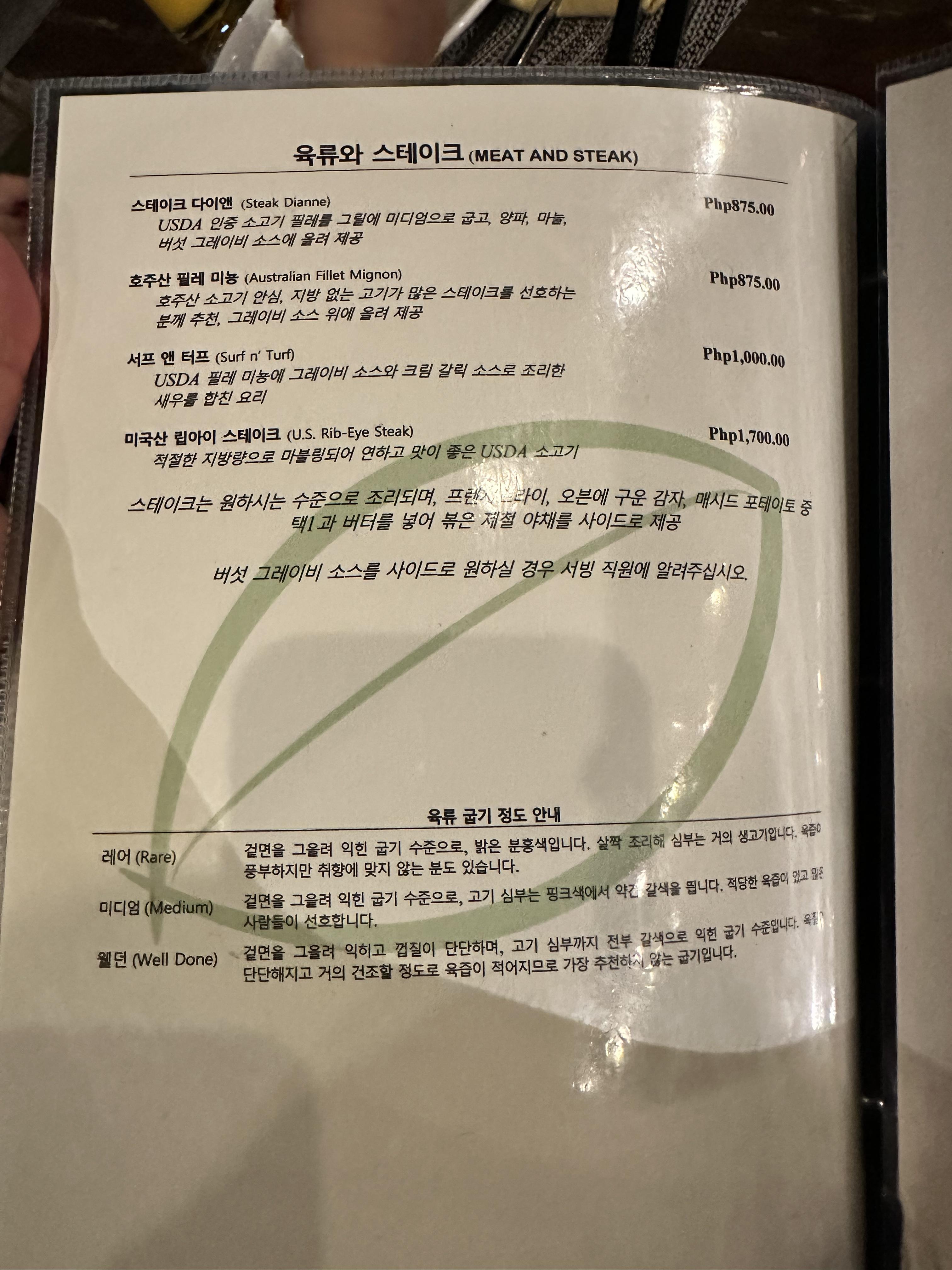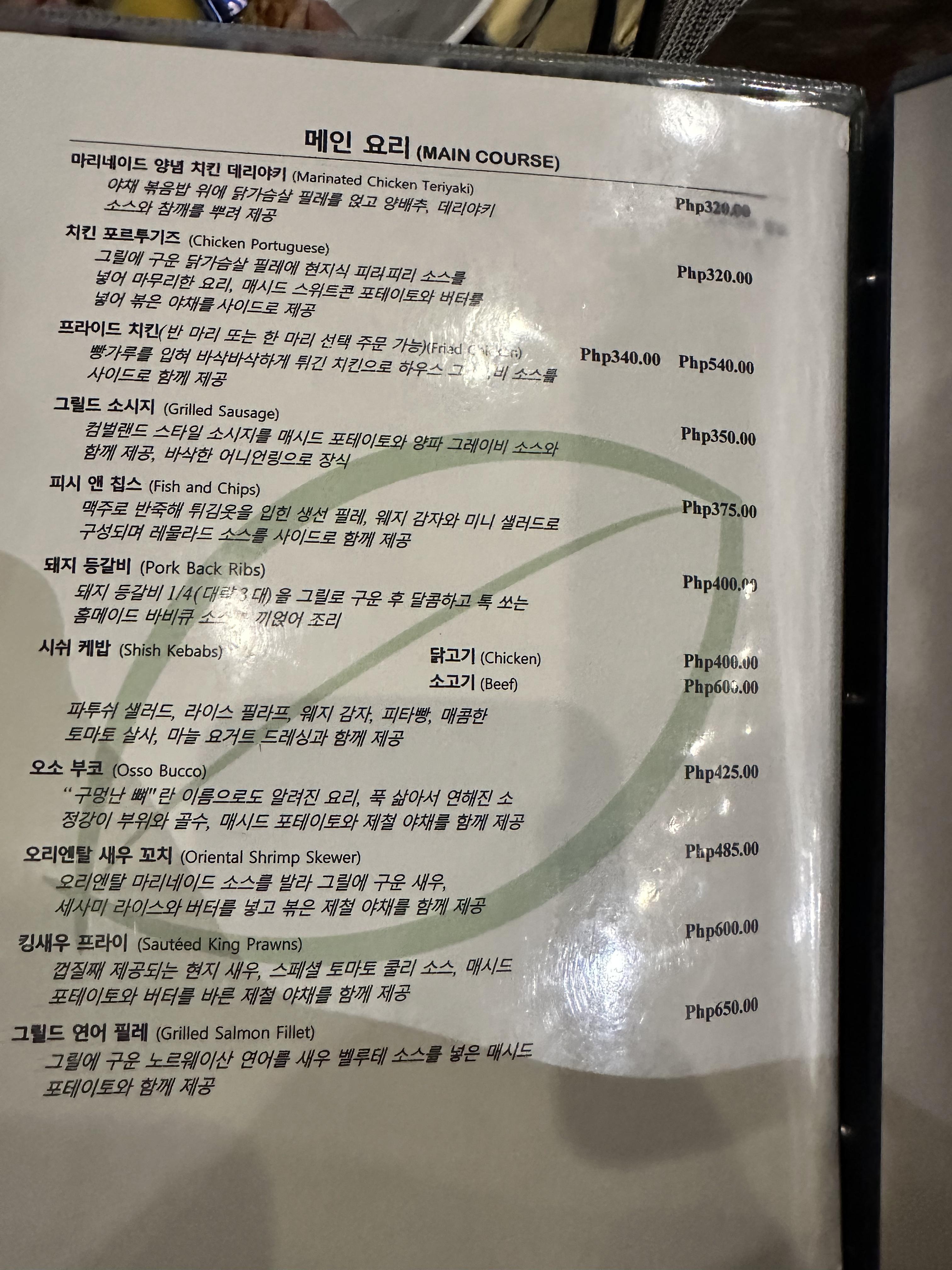 보홀비치클럽 메뉴