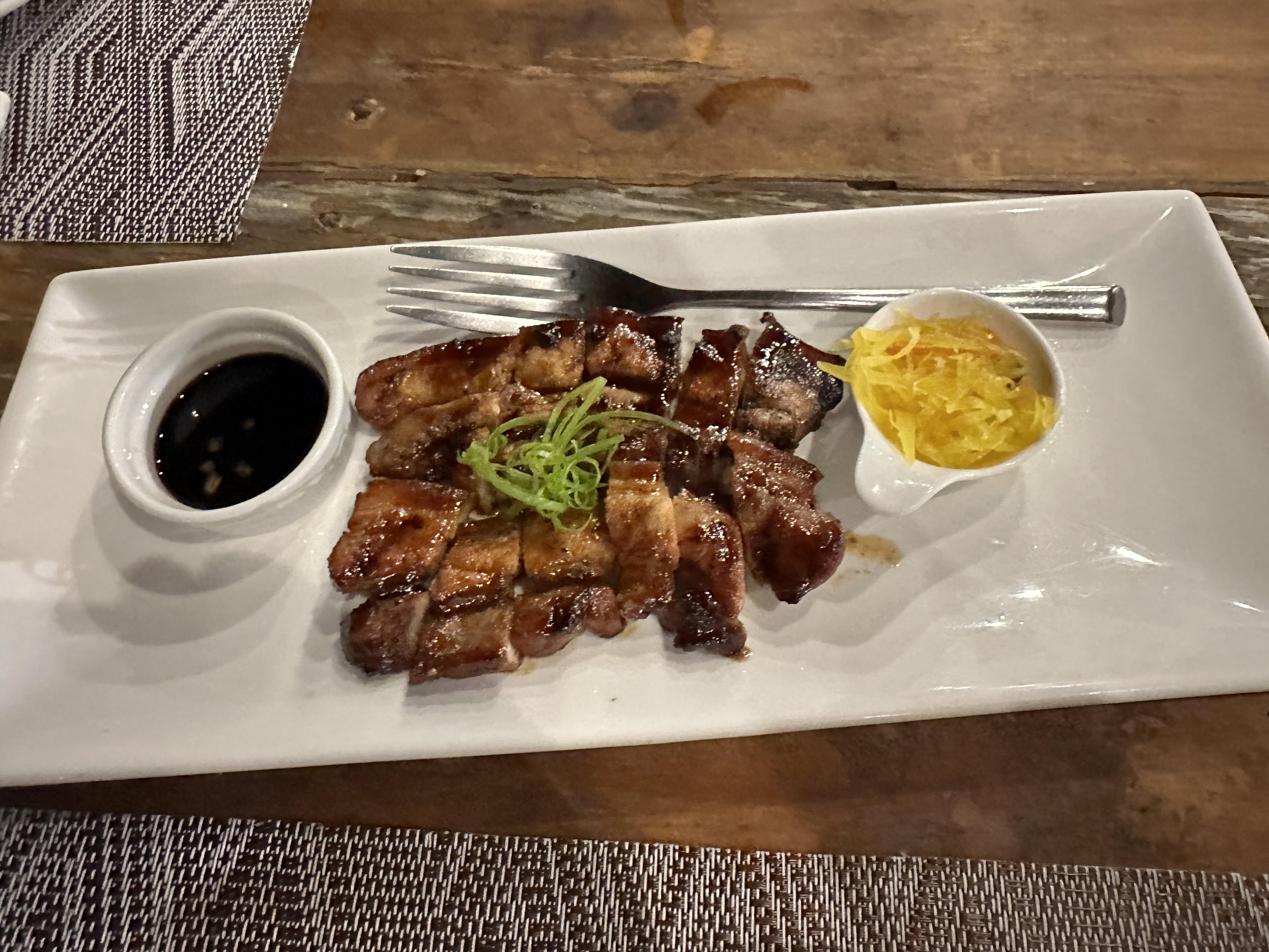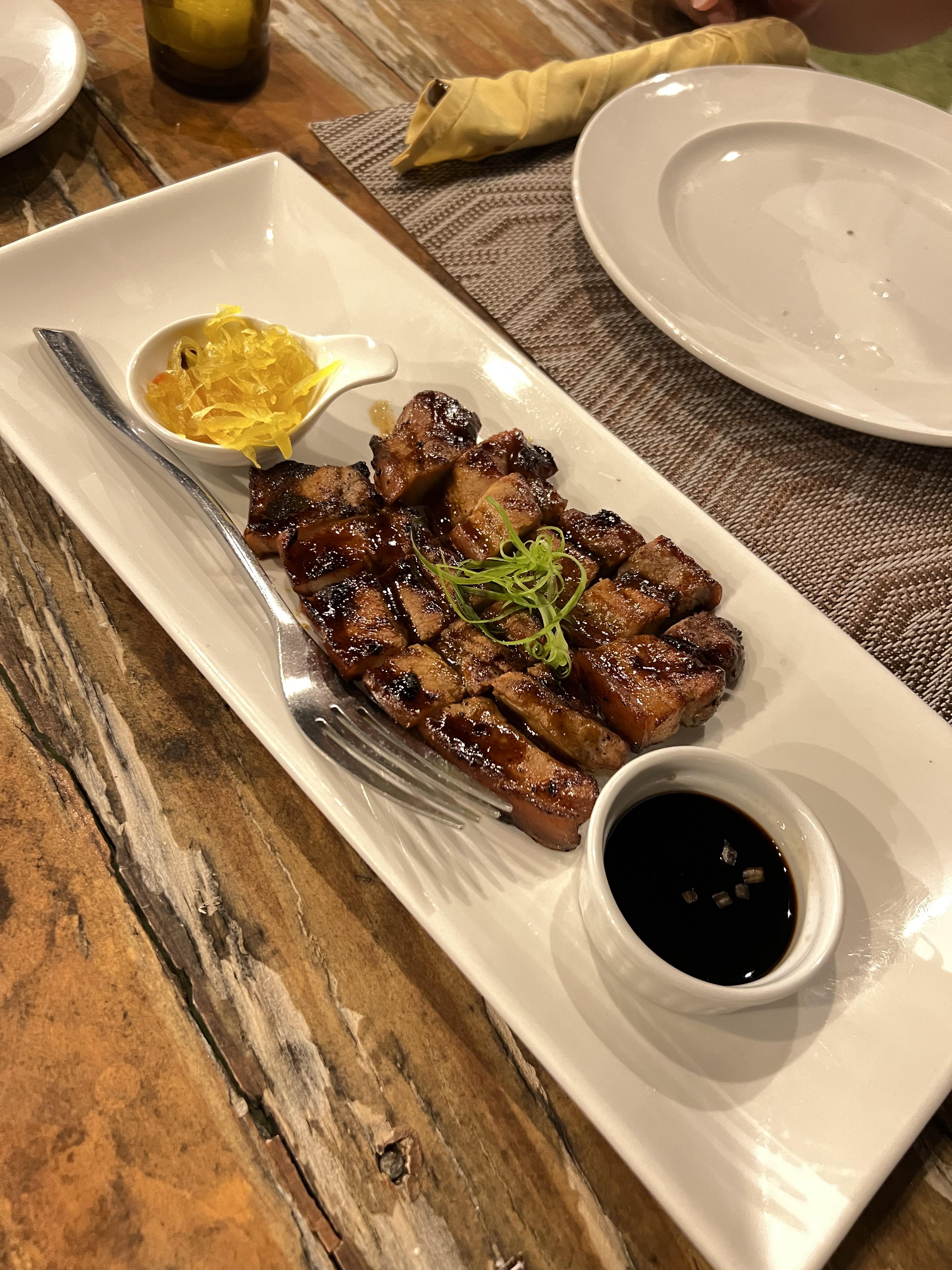 우리나라 삼겹살과 같은 음식인데 간장소스와 함께 곁들여진 음식입니다. 필리핀 음식으로 현지사람들도 즐겨 먹는 음식이라고 합니다. 200페소, 약 4,500원에 먹을 수 있는 고급 레스토랑 삼겹살입니다. 이것도 너무 맛있어서 2번 시켜 먹었습니다.