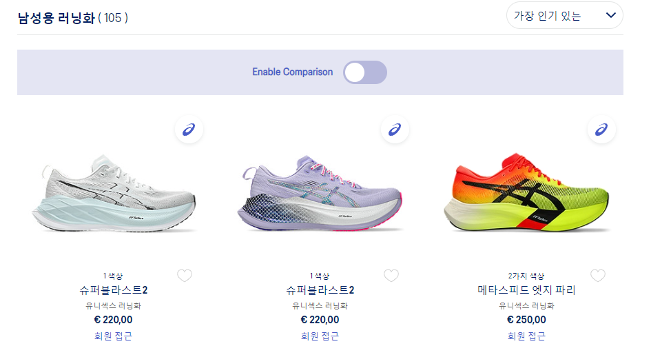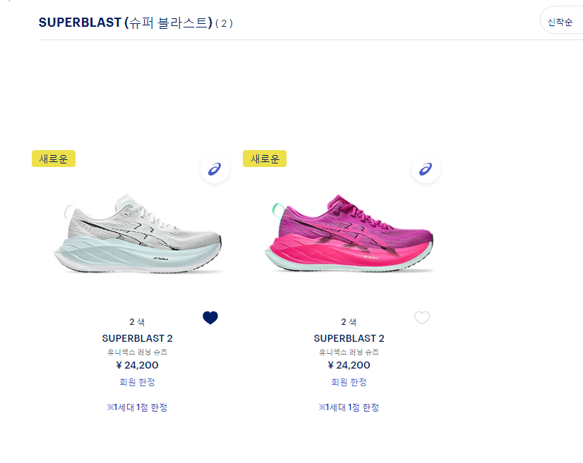 일본 아식스 홈페이지에도 슈퍼블라스트2가 두 가지 색상이 출시되었습니다. 한국보다 늦게 출시한 것도 신기하네요.