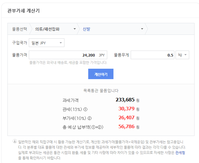 총 합 신발값(226,000원)+ 관부가세(56,000원)+배송대행비(25,000원)해서 약 307,000원 정도가 예상이 됩니다.