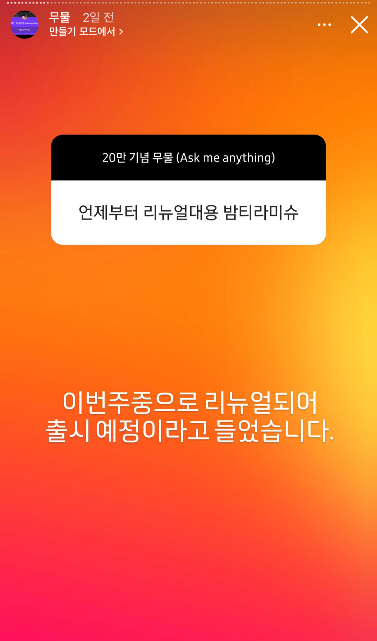 나폴리 맛피아 인스타 릴스를 통해서 나온 일정은 현재 밤티라미슈의 맛을 피드백 받아서 리뉴얼돼서 다시 출시할 예정이라고 합니다.