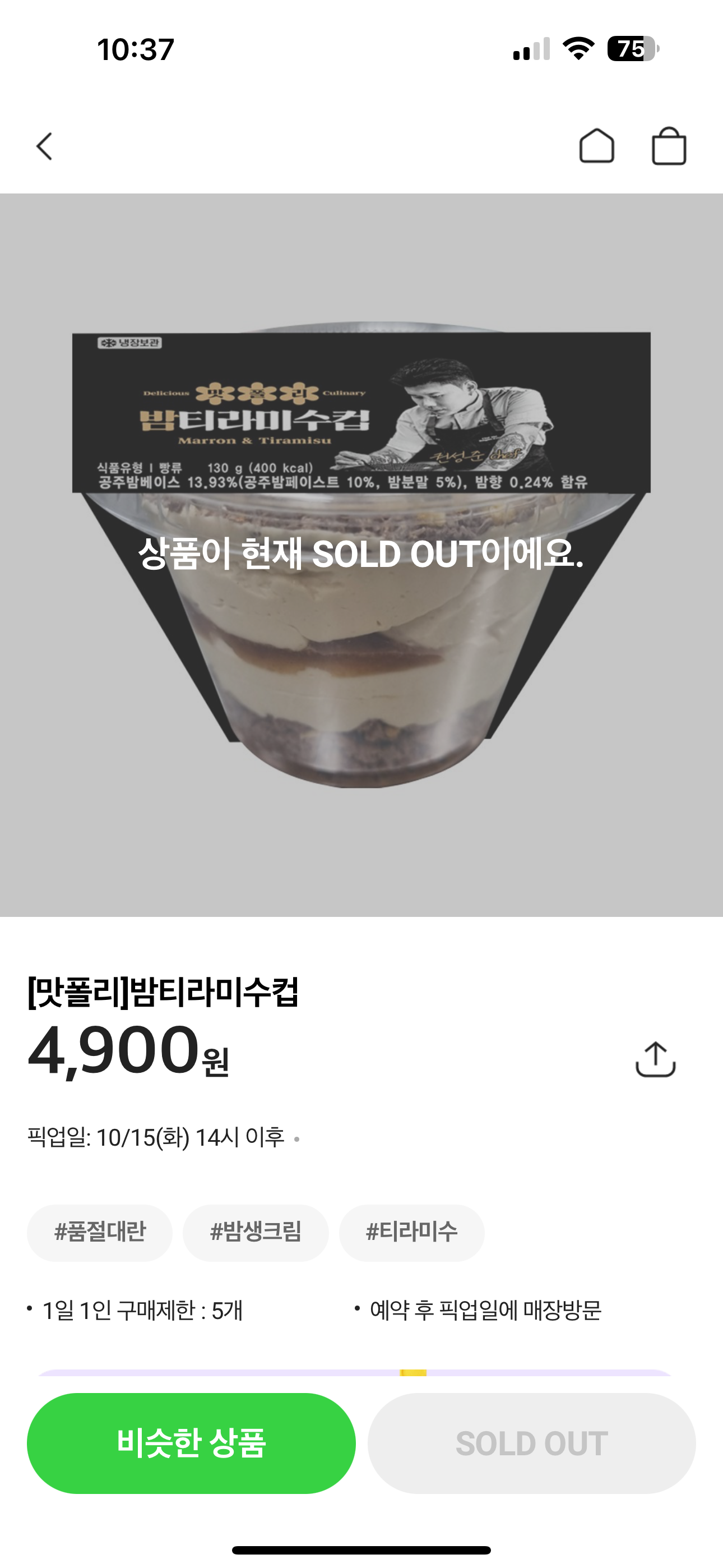 포켓CU 어플을 통해서 밤티라미수컵 사전예약이 가능한데 현재 품절인 상태입니다. 약 3만 개 물량을 10월 초에 나눠서 예약을 진행했었는데 그때마다 서버가 마비될 정도로 인기가 많았습니다. 저도 간신히 사전예약에 성공을 해서 구매를 할 수 있었습니다.