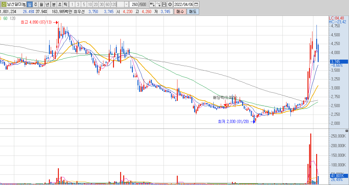 남선알미늄차트입니다.