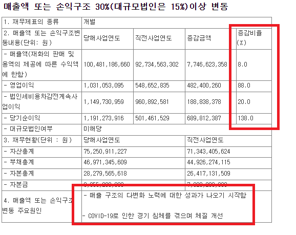 코로나19로 인한 경기 침체를 겪으며 체질 개선이 되었다고 설명이 나왔습니다.