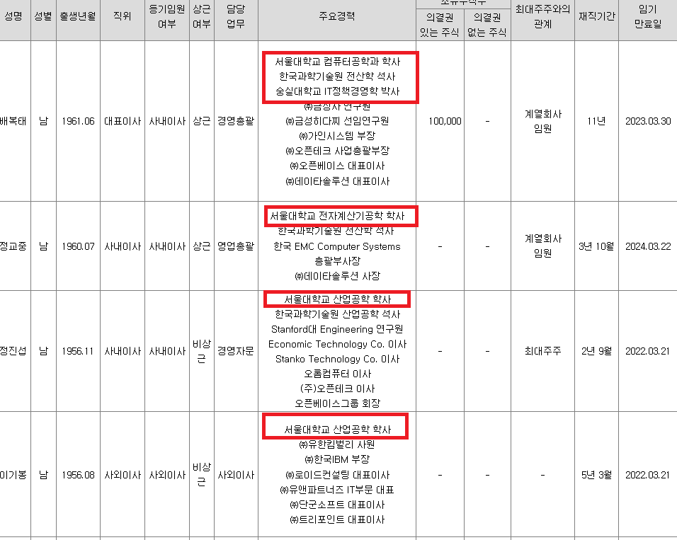 데이타솔루션의 경영진의 출신은 대부분은 서울대학교 출신으로서