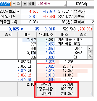 구영테크 시간 외 거래에서 상한가 풀리다.