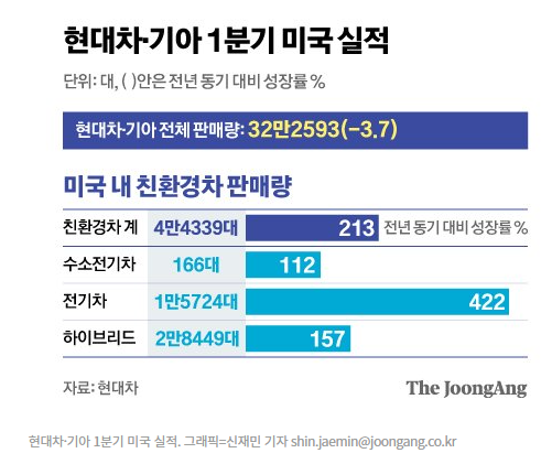 현대차 그룹은 올해 1분기 미국에서 전체 판매량은 전년대비 3.7% 줄었지만,