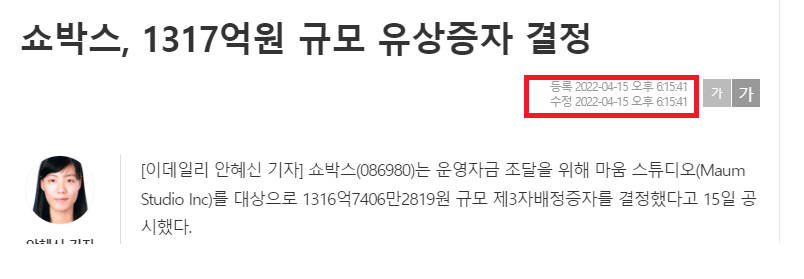 쇼박스는 정규시장 마감 후 시간 외 단일 거래 시간이 끝난 6시 이후에 유상증자 발표를 했습니다.