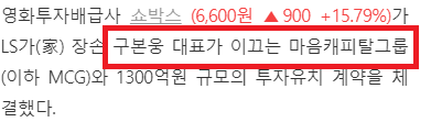 공시에 나온 대표는 구본웅을 검색해서 보니깐 LS가의 장손으로 알려져 있었습니다.