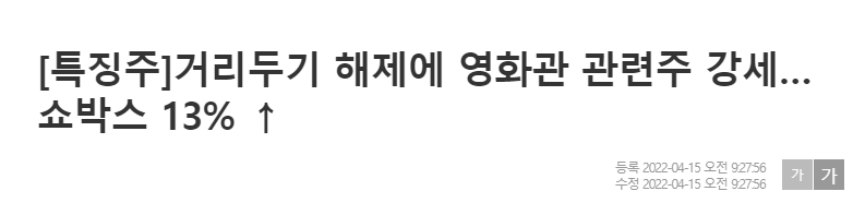바로 거리두기 해제에 영화관을 찾는 사람들이 많아져서 수혜를 받을거란 기대감에