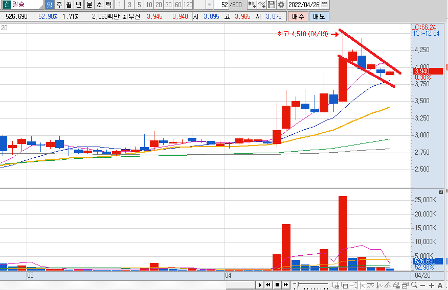 3. 일승을 4/26 매수한 상태이며, 4/27 기대를 하면서 기도하고 있는 상황입니다.