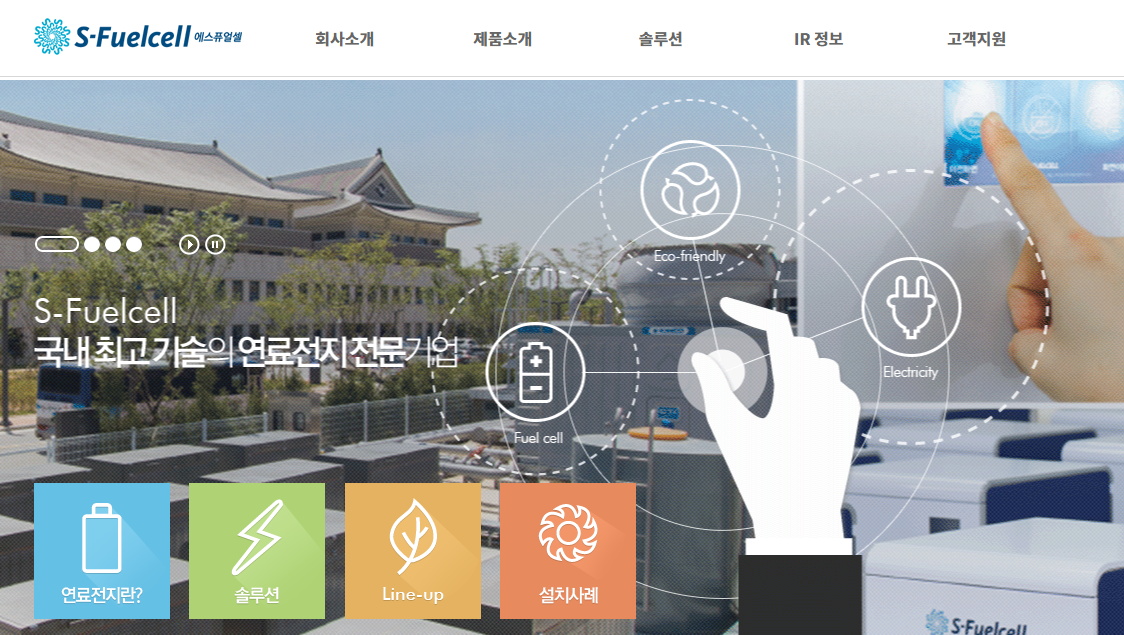 에스퓨얼셀은 연료전지전문기업으로서, 건물용 연료전지 분야의 다년간 연구개발 및 제품판매 경험을 바탕으로 국내외 최고 수준의 기술을 확보하고 있는 기업입니다. 또한 수수연료전지 전문회사로서 발전용연료전지를 생산하고 있습니다.