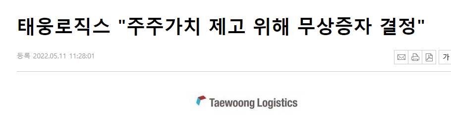 태웅로직스는 보통주 1주당 신주1주를 배정하는 100% 무상증자를 결정했다고 밝혔으며, 이번 무상증자에 대해 주식 유동성 확대 및 주주가치 제고를 위한 결정이라고 말했습니다. 태웅로직스는 지난 2019년 말 코스닥 시장에 상장한 이래 처음 진행하는 무상증자라고 밝혔으며, 투자자 의견을 적극 반영해서 결정한 것이라고 말했습니다.