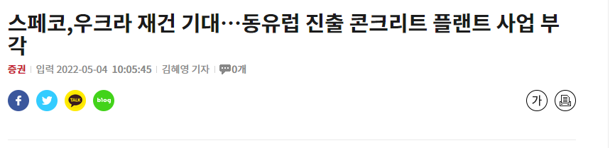 스페코는 아스팔트 플랜트 사업을 시작으로 콘크리트 플랜트, 크러셔 등의 건설장비 사업을 영위하며, 우크라이나 재건 기대감 속에 부각이 되고 있는 상황입니다. 특히 우크라이나는 한국이 특정 지역 등을 맡아 참여할 수 있도록 진행하려고 한다고 밝혔습니다.