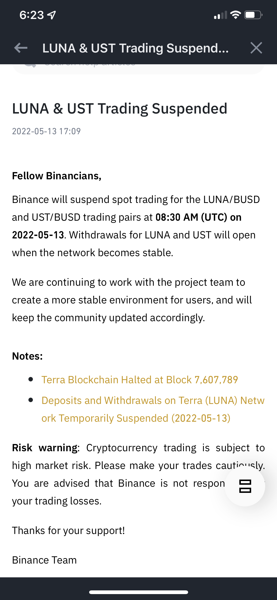 루나의 거래를 지원하던 거래소들은 상장폐지를 결정하게 되었으며, 대부분은 거래가 불가합니다.